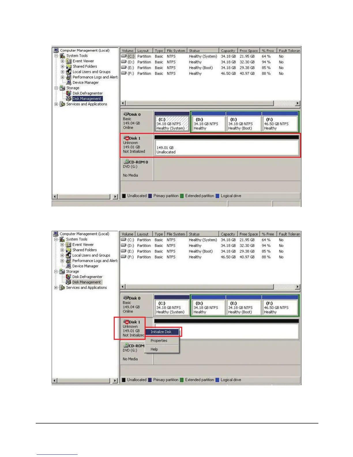 10) As shown below, please select “Disk Management”. The unformatted hard disk will appear (as shown