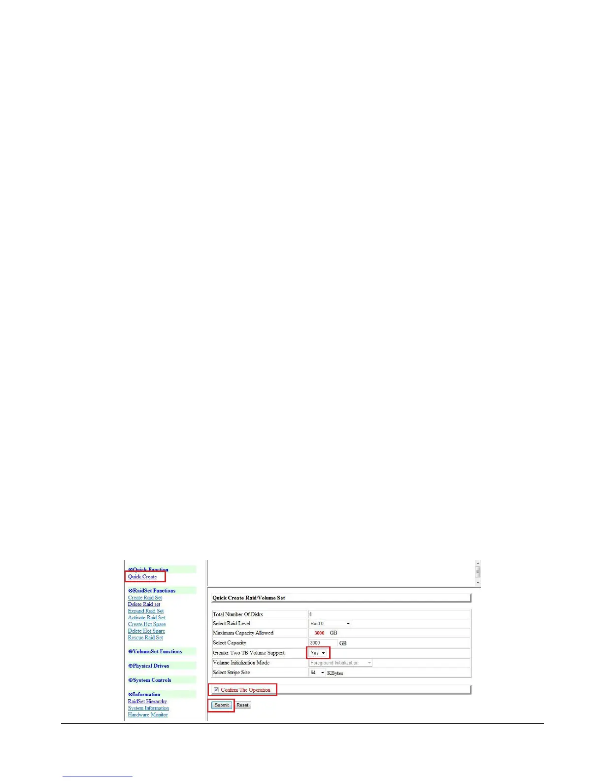 Click“QuickCreate”,nd“GreaterTwoTBVolumeSupport”andselect“Yes”.Tick“ConrmThe