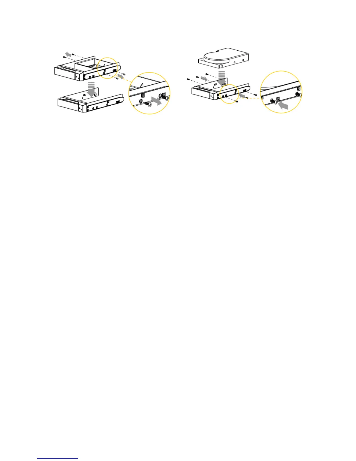 2) Install your hard disks into the removable rack and secure them in place with the screws included in