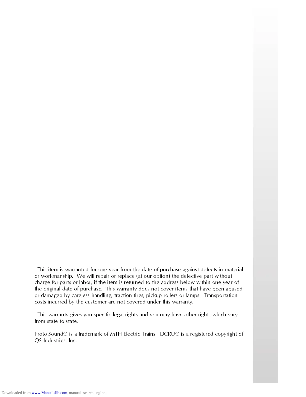 Proto-Sound® is a trademark of MTH Electric Trains. DCRU® is a registered copyright of