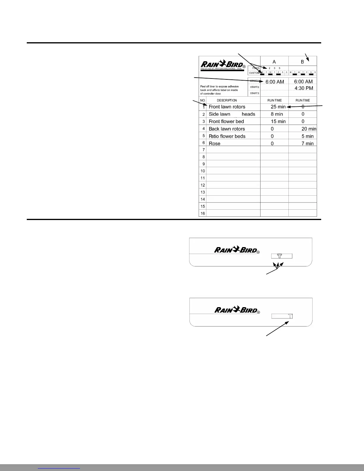Ë In the Program A column, mark the watering schedule.