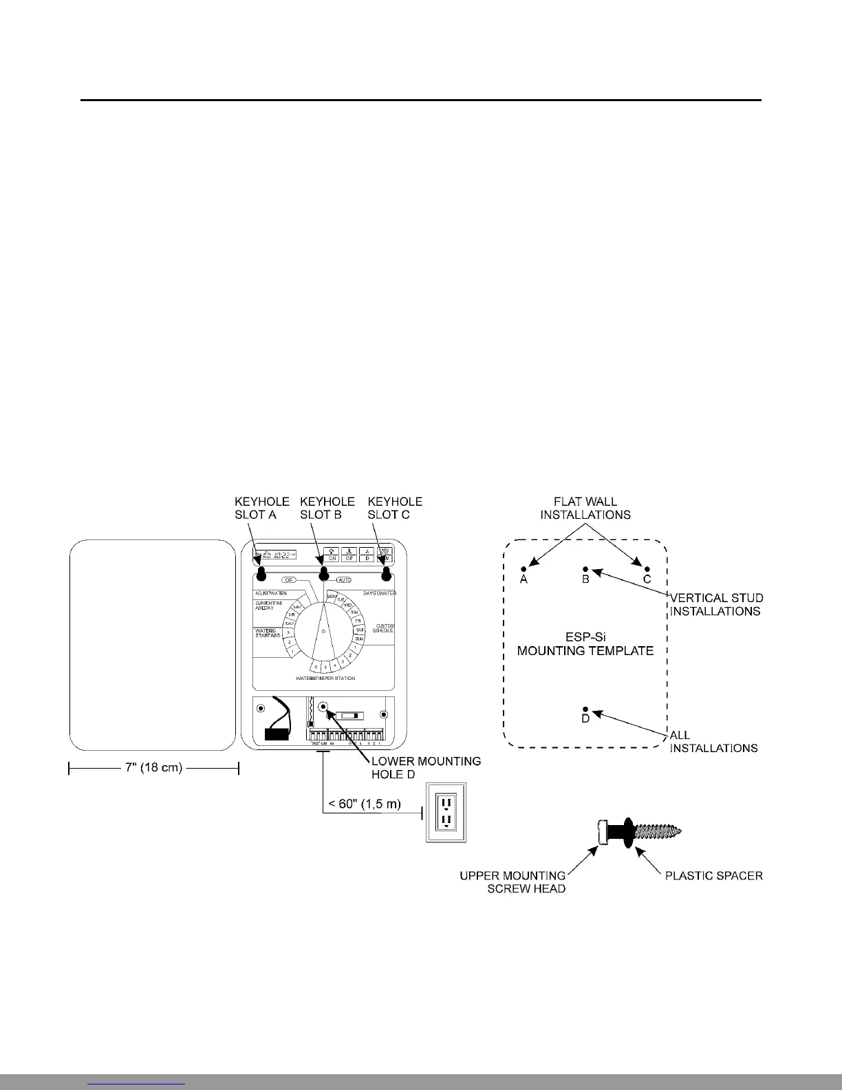•Hang the controller on the upper keyhole slots. Make sure the spacers are in the upper, narrow portion of