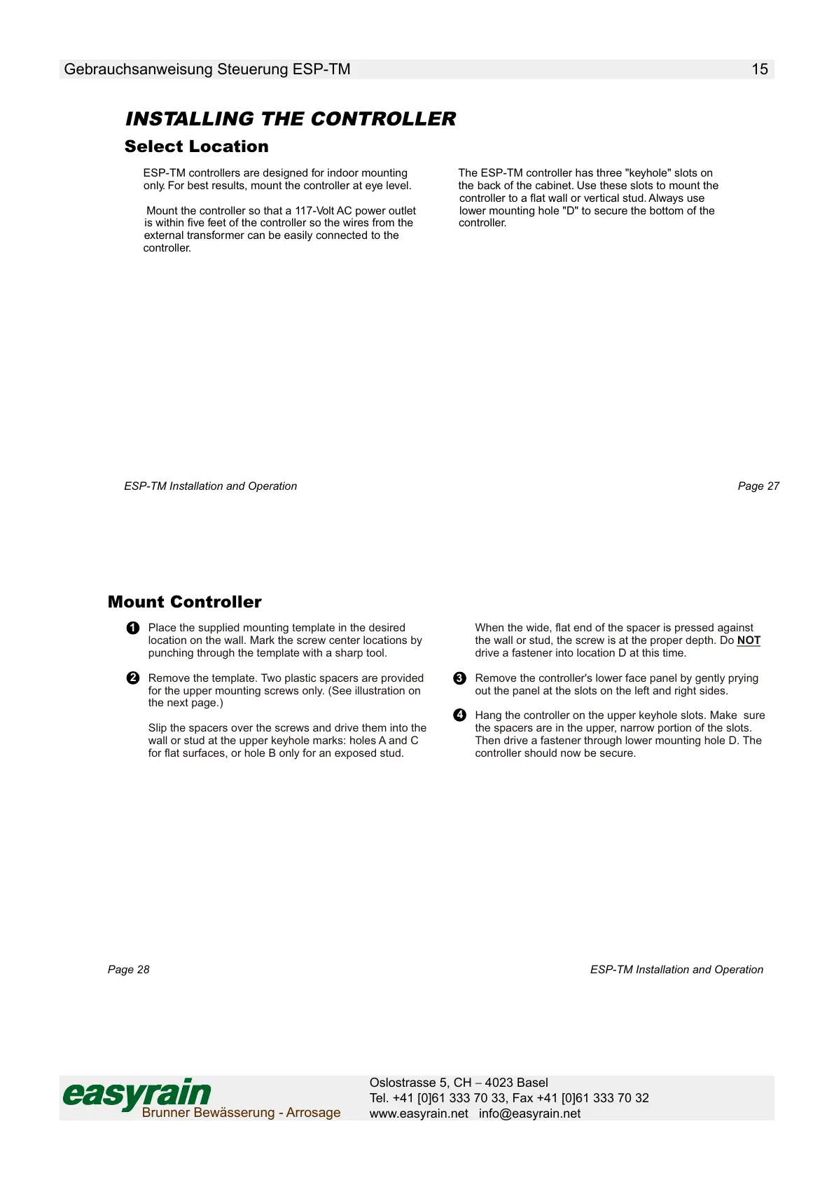 Gebrauchsanweisung Steuerung ESP-TM 15