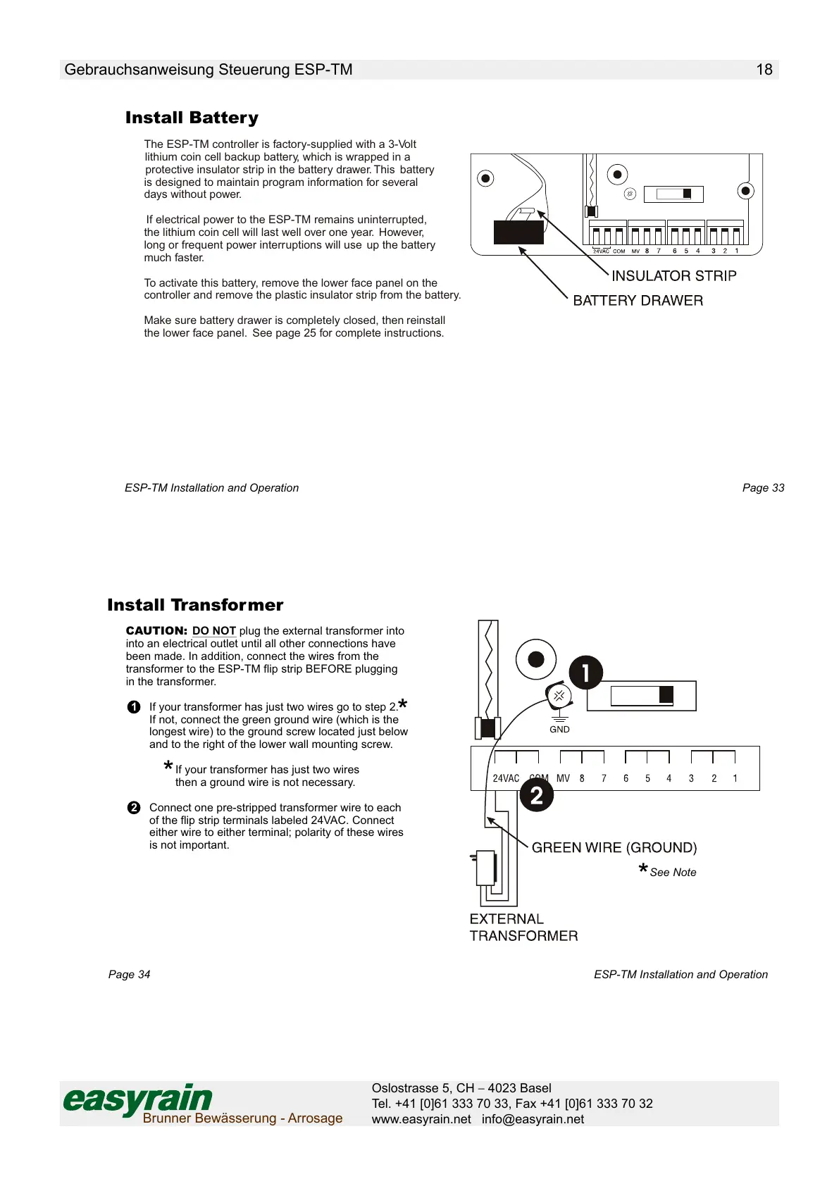 The ESP-TM controller is factory-supplied with a 3-Volt
