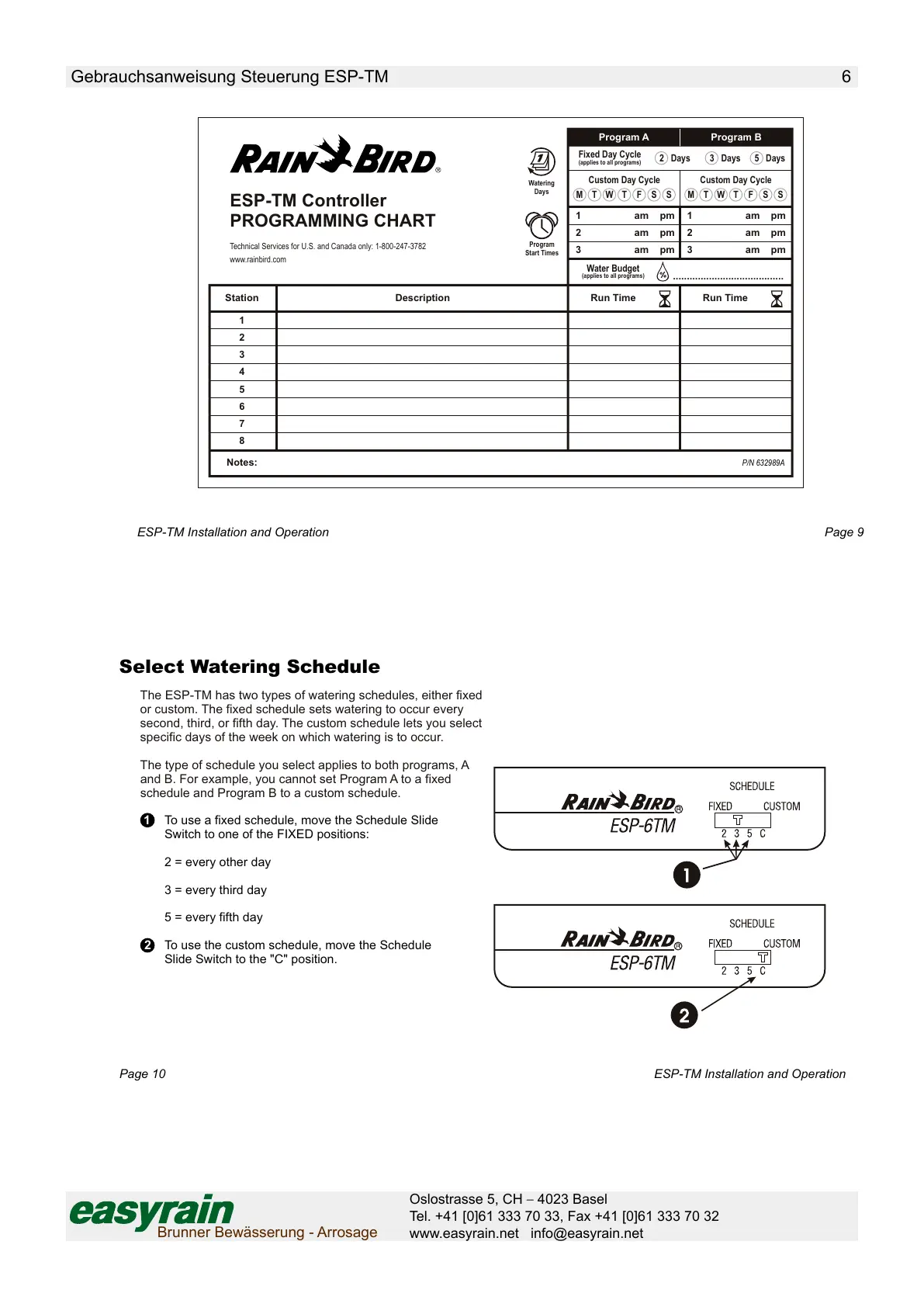 The ESP-TM has two types of watering schedules, either fixed