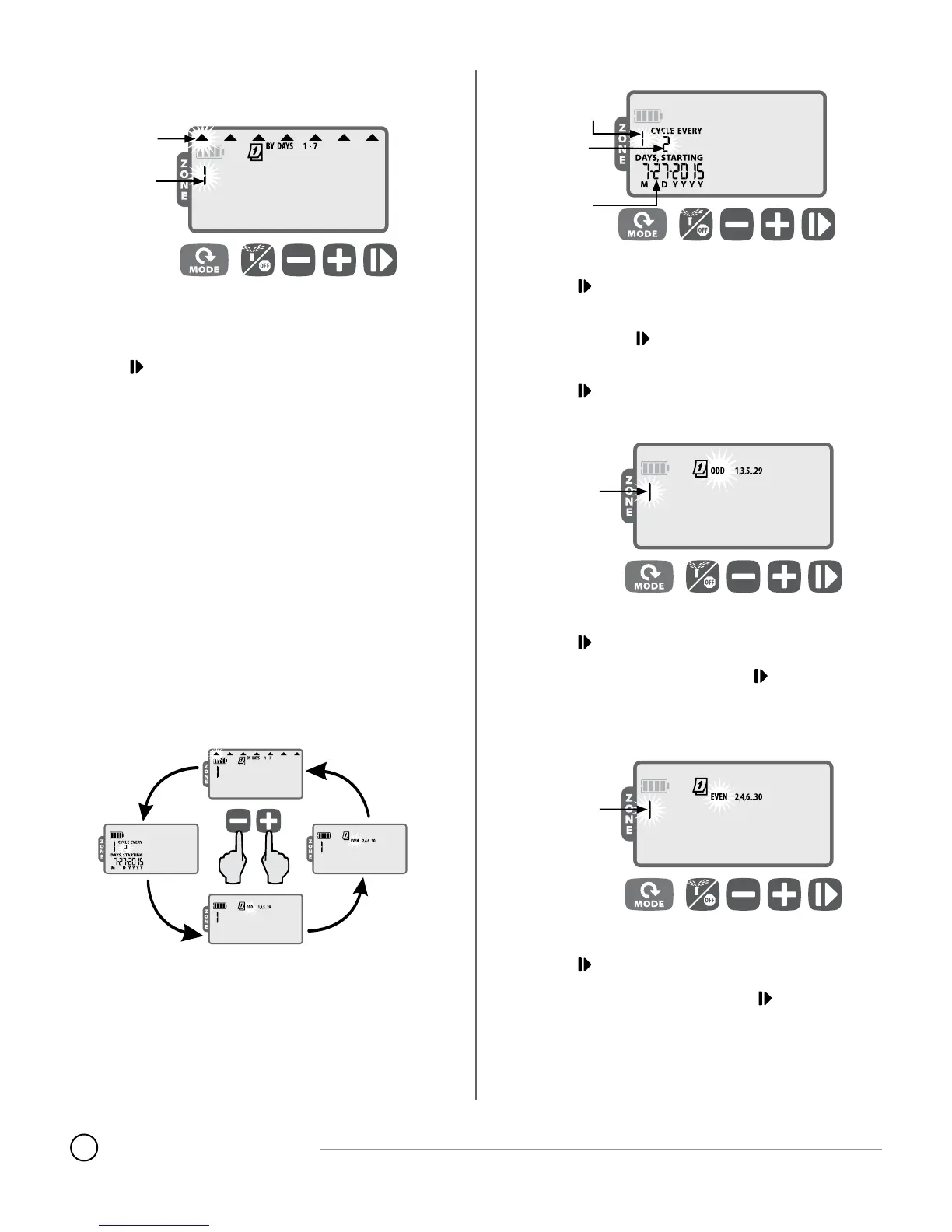 To change a zone’s watering day type, simply press the