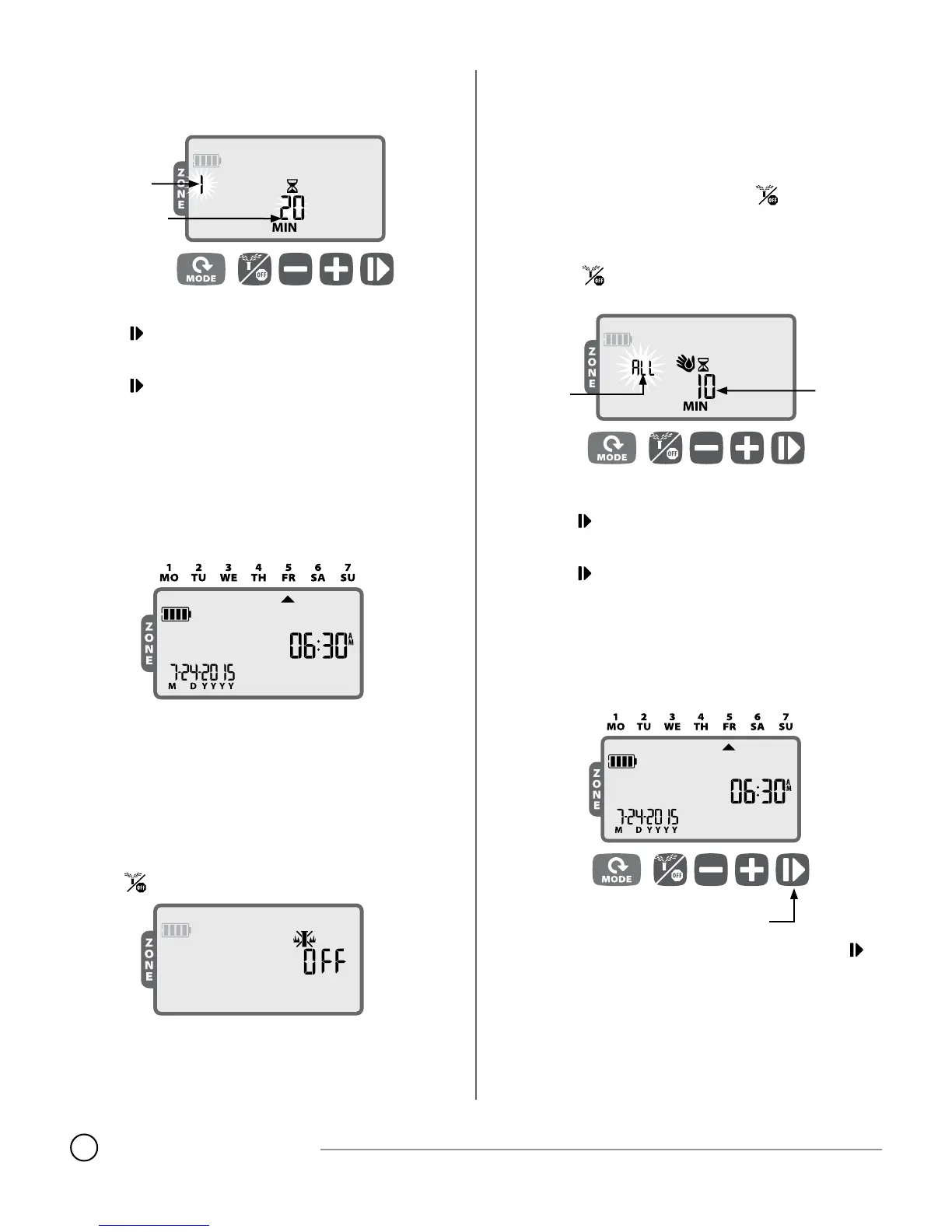 NOTE: To water the scheduled runtime for each zone: Press