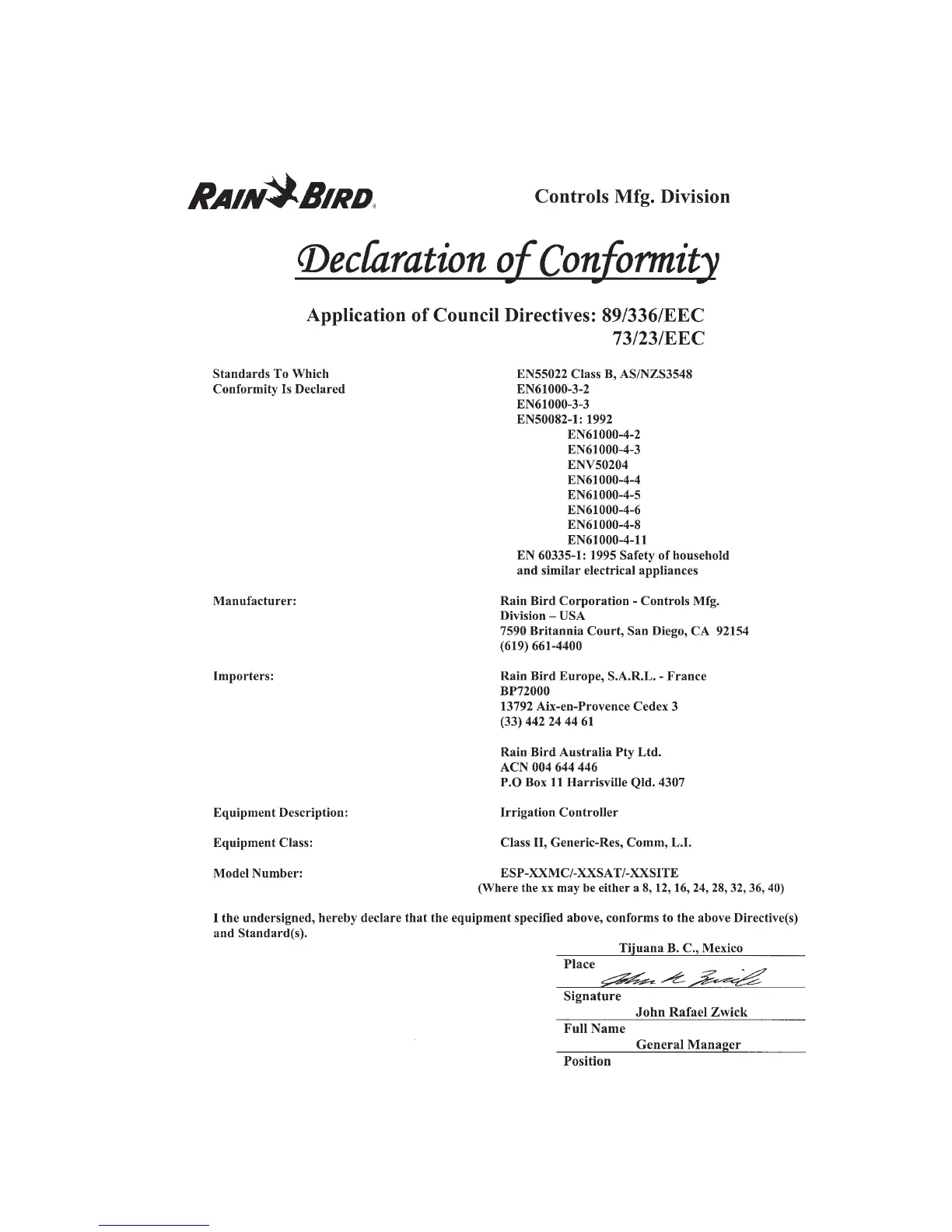 Other manuals for Rain Bird ESP-MC