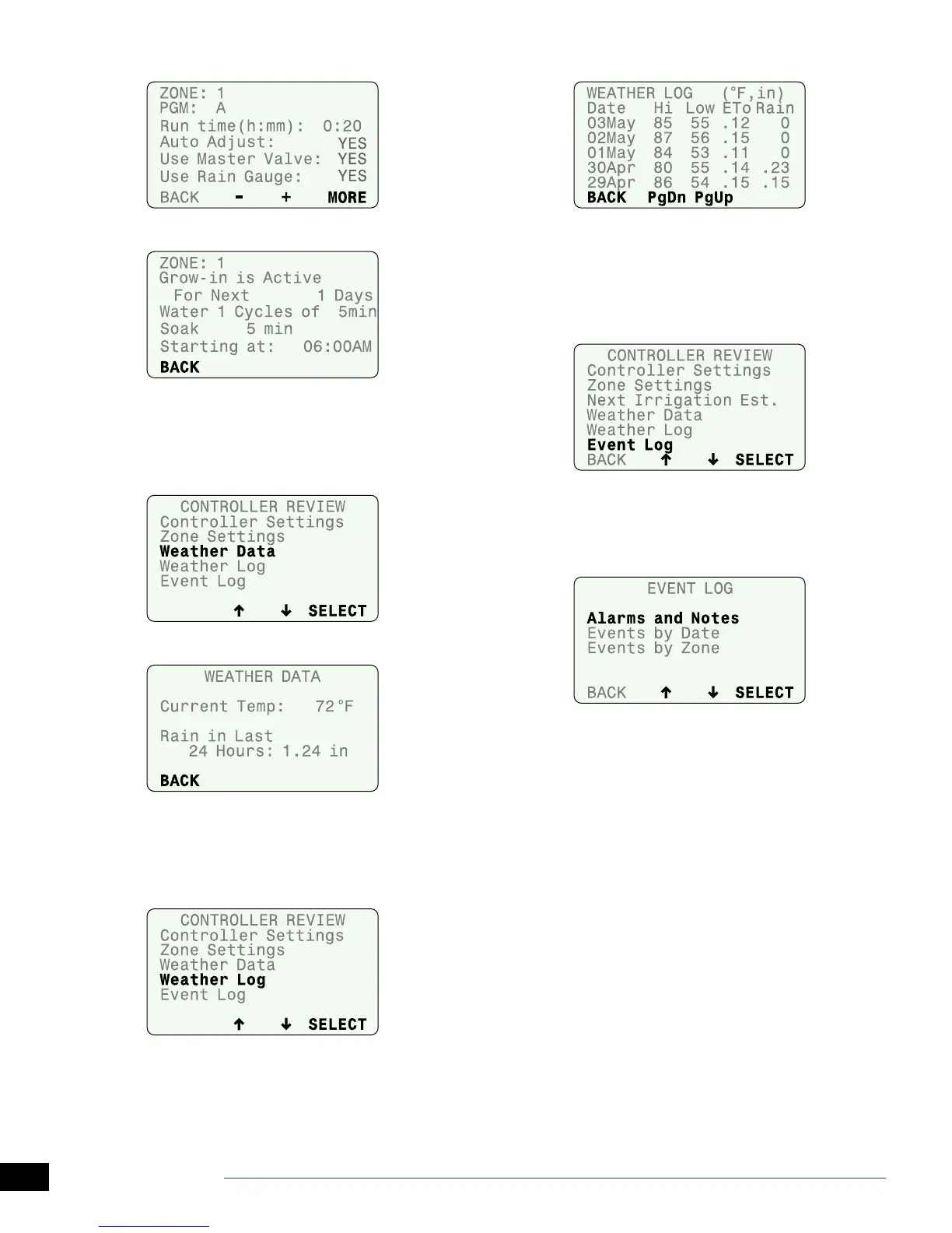 irrigation events by date or by zone. Check these messages