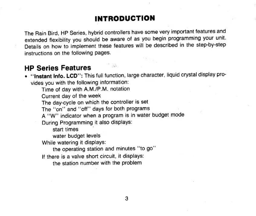 Rain Bird HP 8 - Introduction and Controller Features; HP Series Core Features