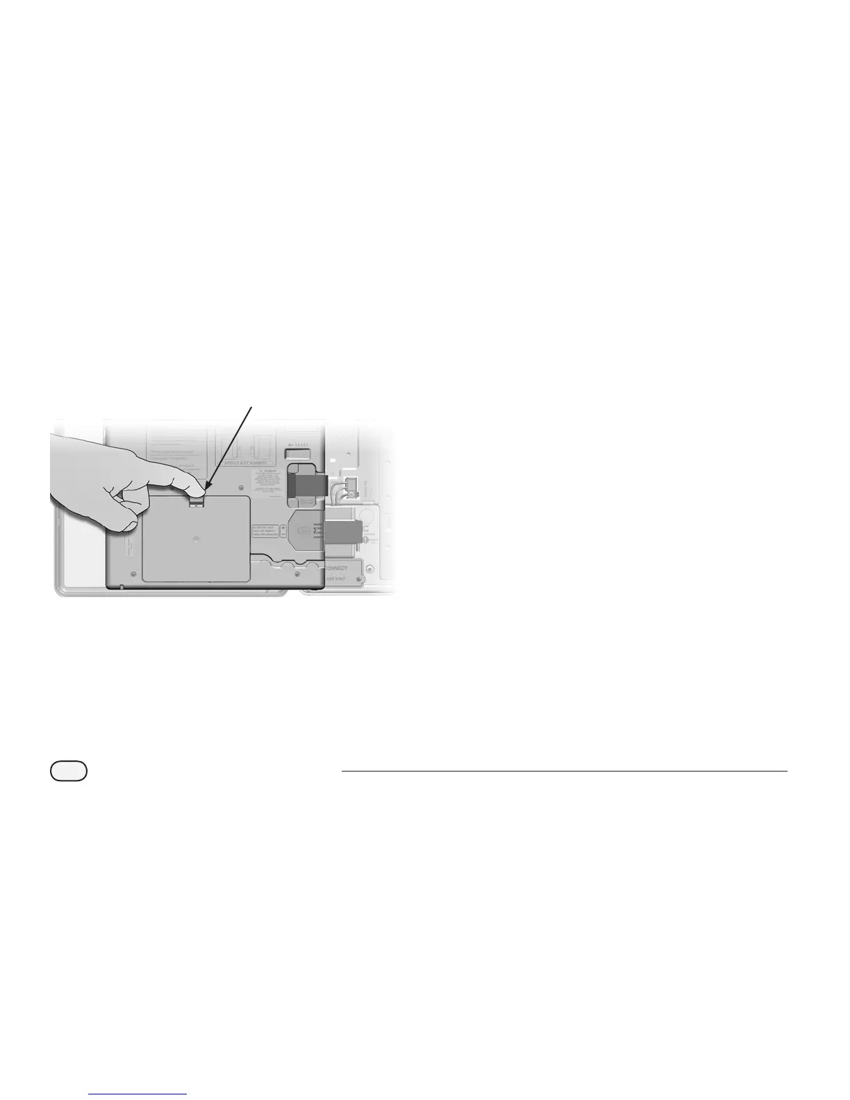 Press down on the top-latch of the cartridge bay cover