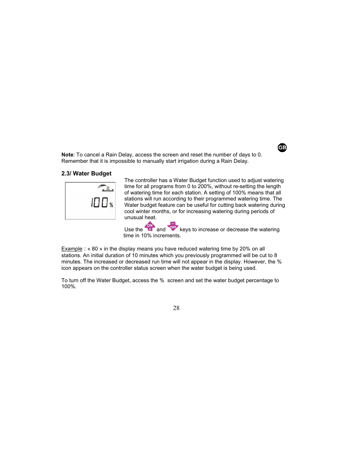 : « 80 » in the display means you have reduced watering time by 20% on all