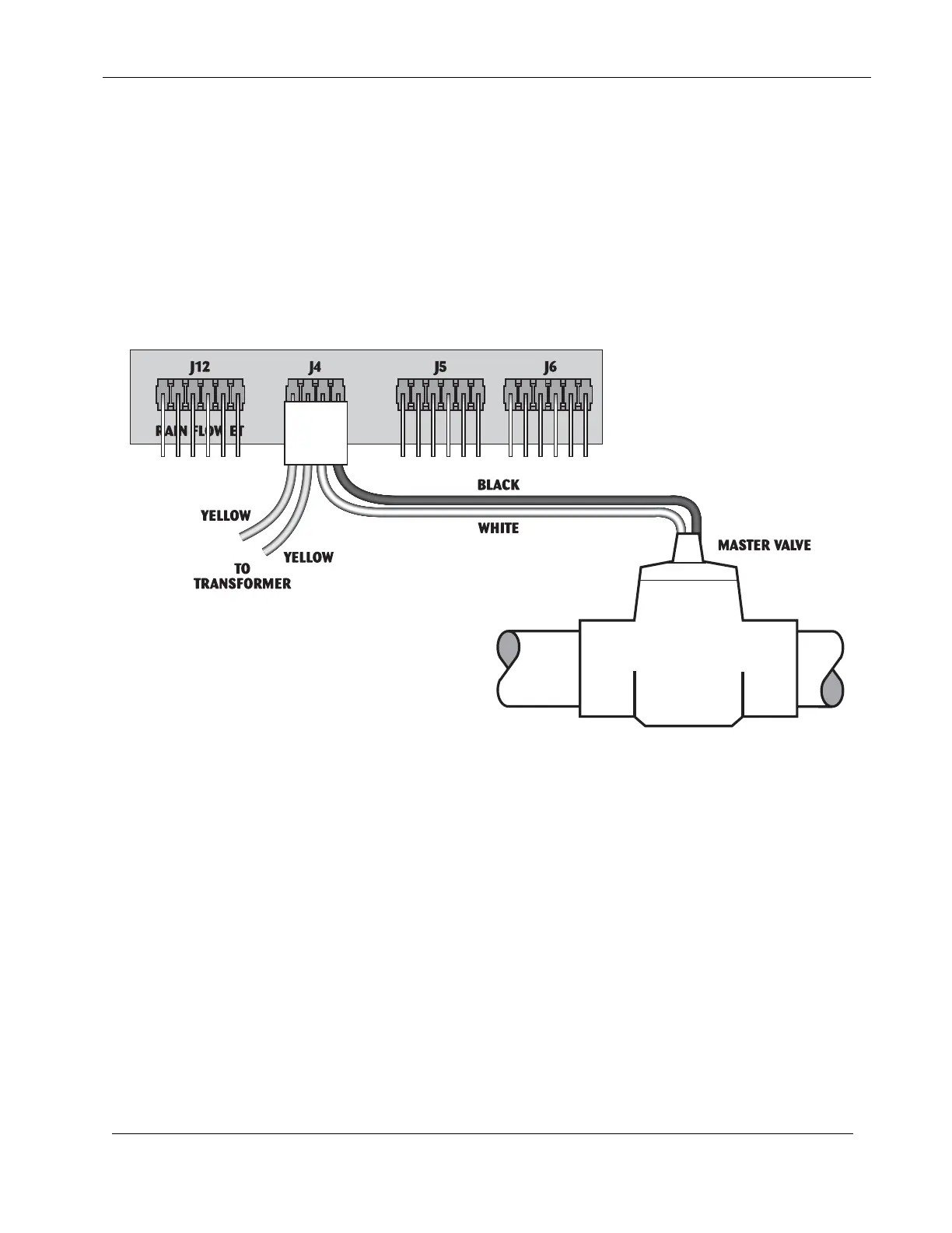 connect the Master Valve solenoid to the MV pin and the common wire to the white wire of J4, as