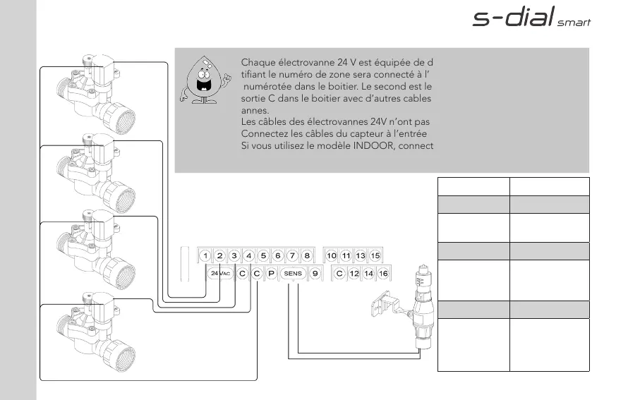 Les câbles des électrovannes 24V n’ont pas de polarité..