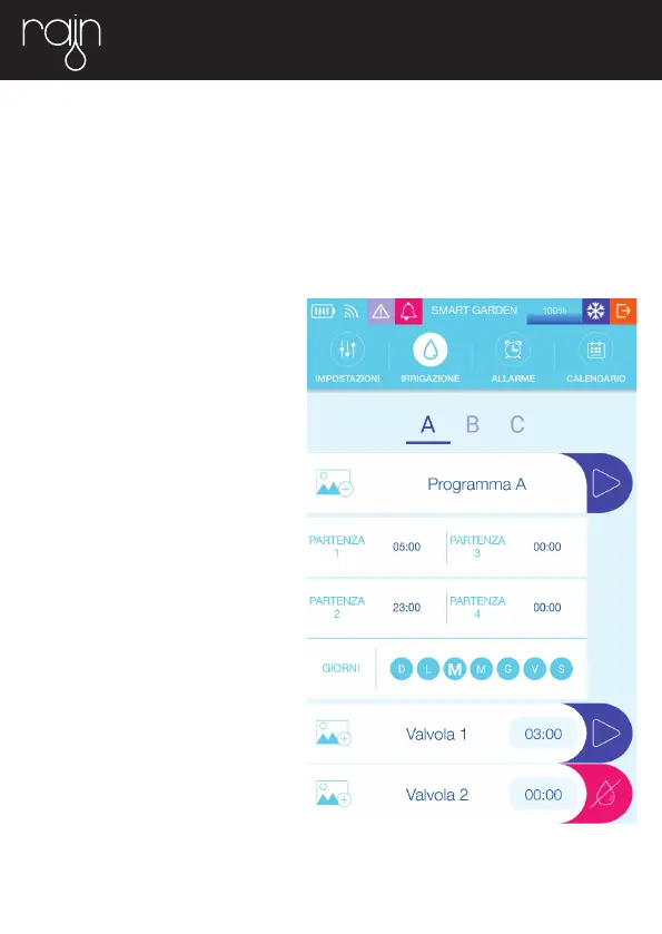 • Ogni programma include un tempo d’irrigazione per ciascuna valvola.