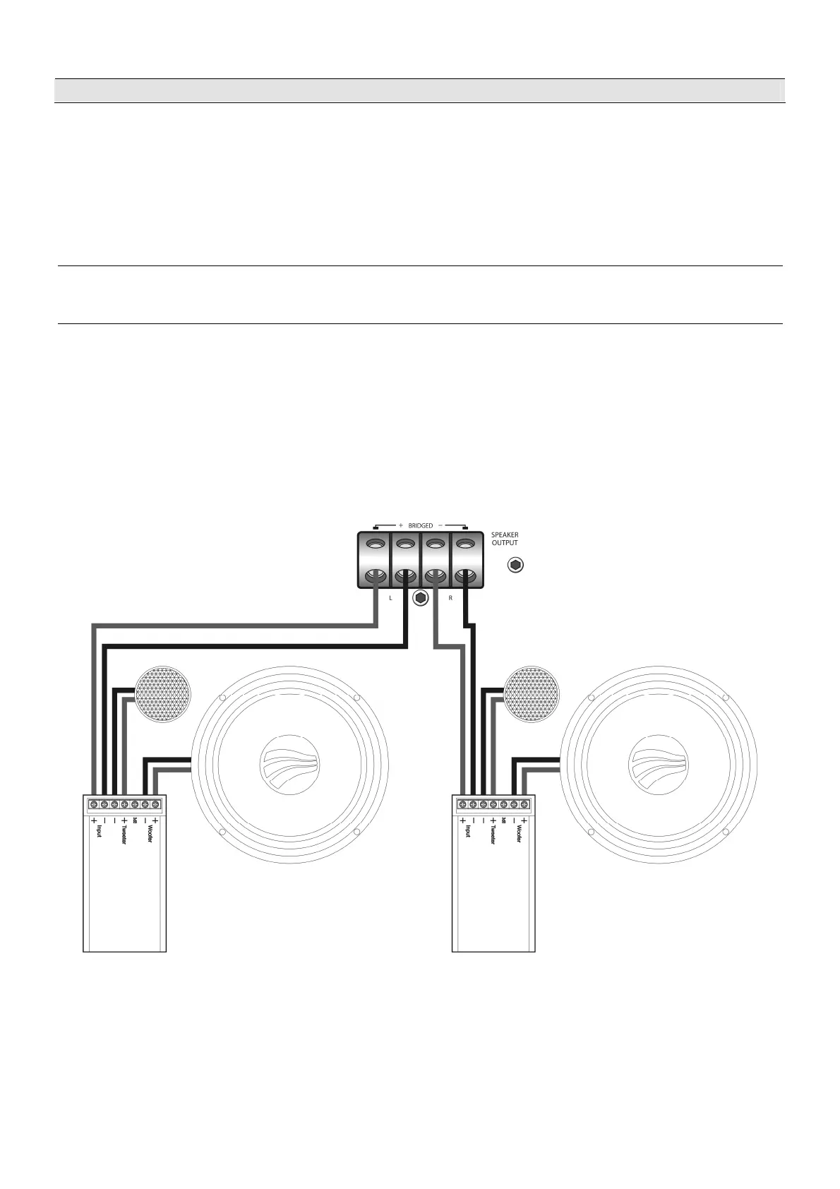 links und rechts dürfen nicht miteinander verbunden werden. Bei Nichtbeachtung kann der Verstärker