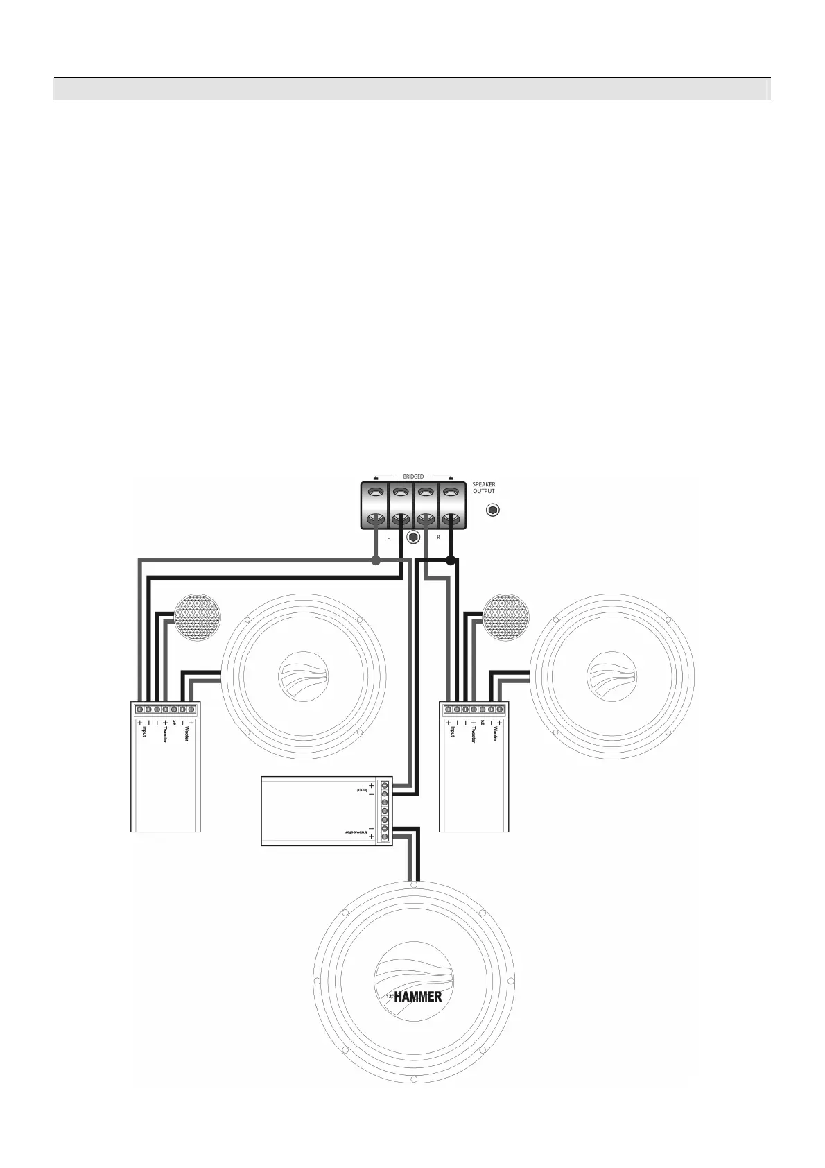 Stereo“ beschrieben, anschließen. Zusätzlich wird ein 8Ω oder 4Ω Subwoofer über eine Passivweiche an den
