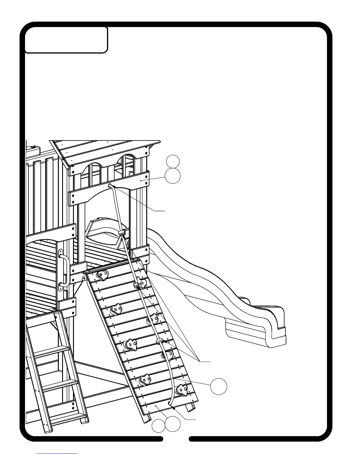 back side of the Rock Wall Board. Tie three single knots evenly throughout the Rope.