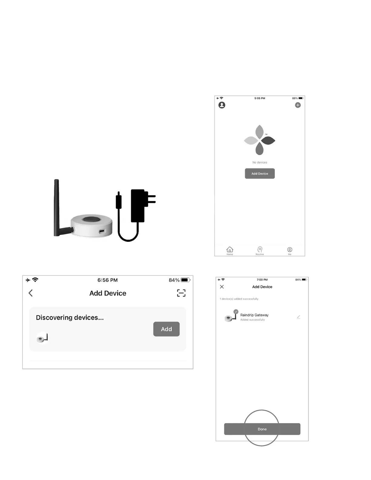 • After the gateway starts blinking, press “Add Device” in the Raindrip app