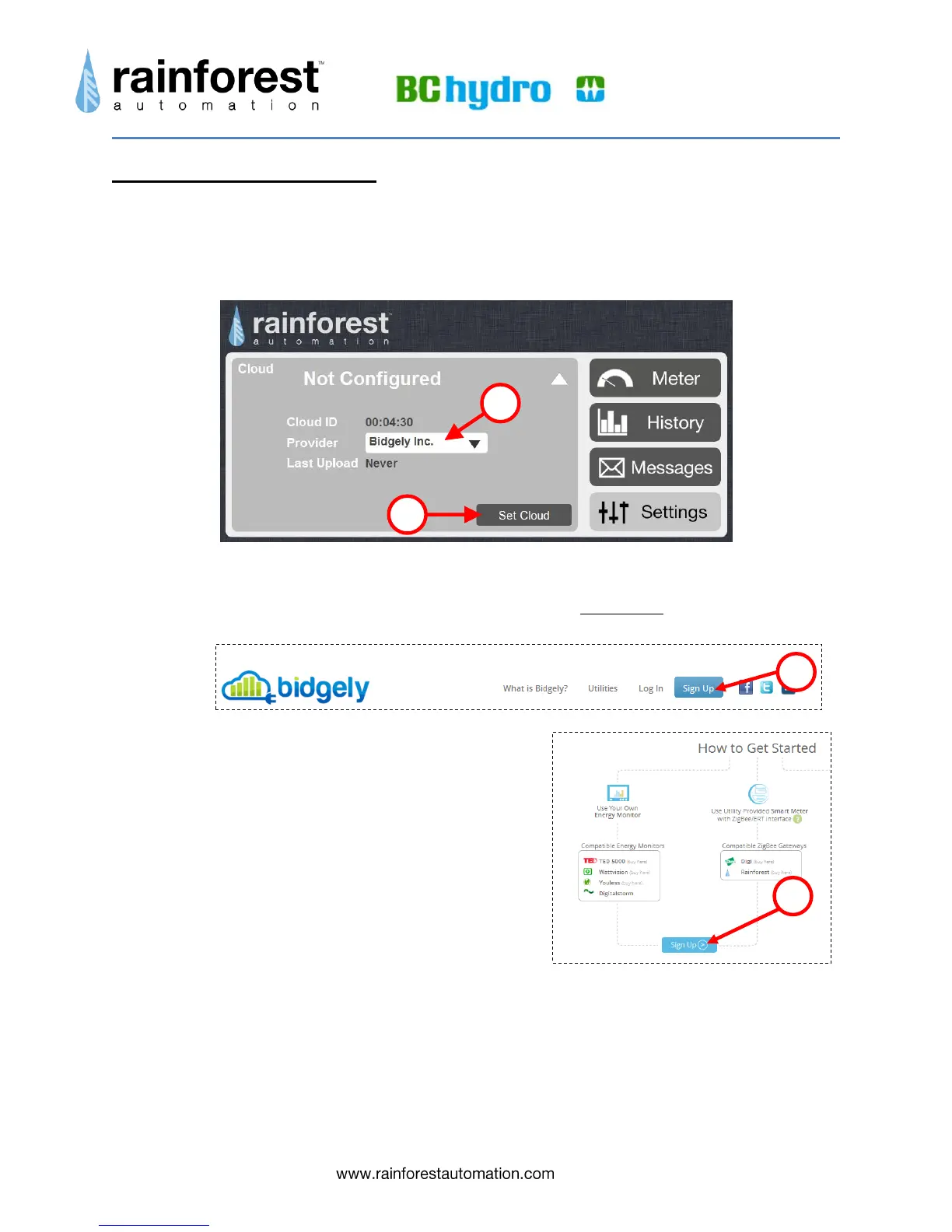1) Open another window in your web browser and go to bidgely.com. Click on 'sign up' at the