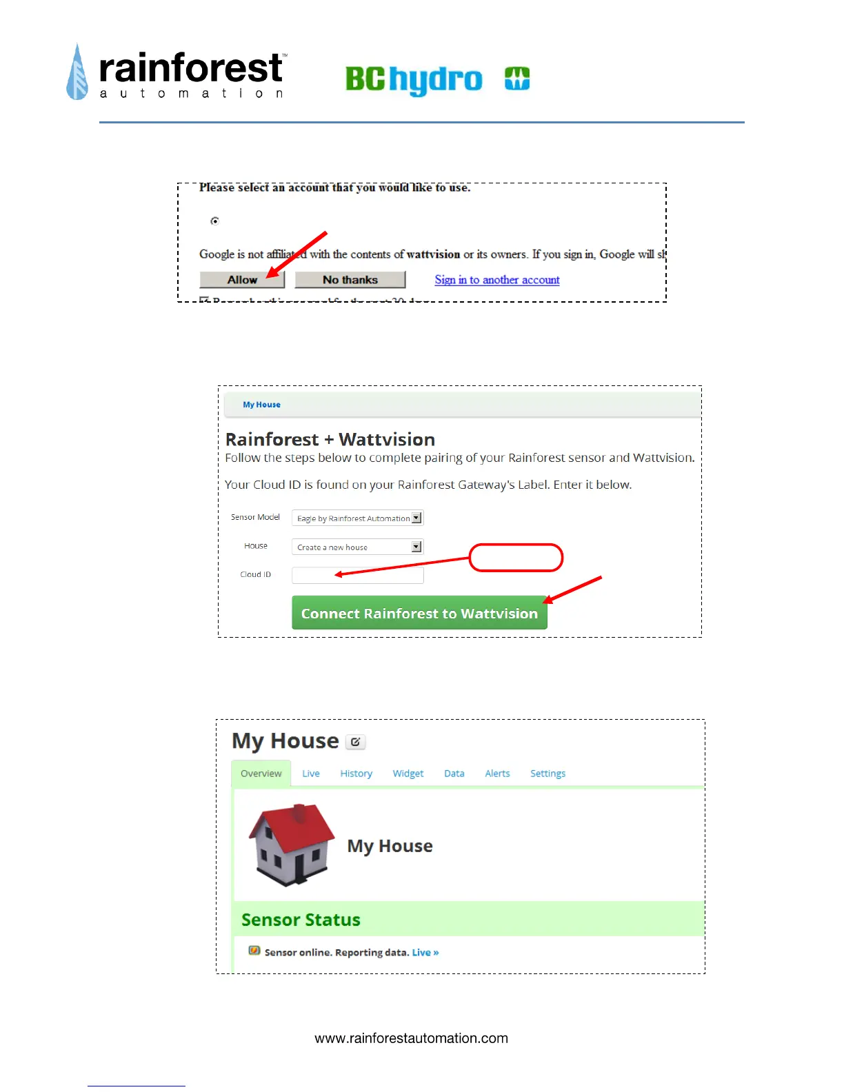 underside of the EAGLE™. Then click the big green “Connect Rainforest to Wattvision”