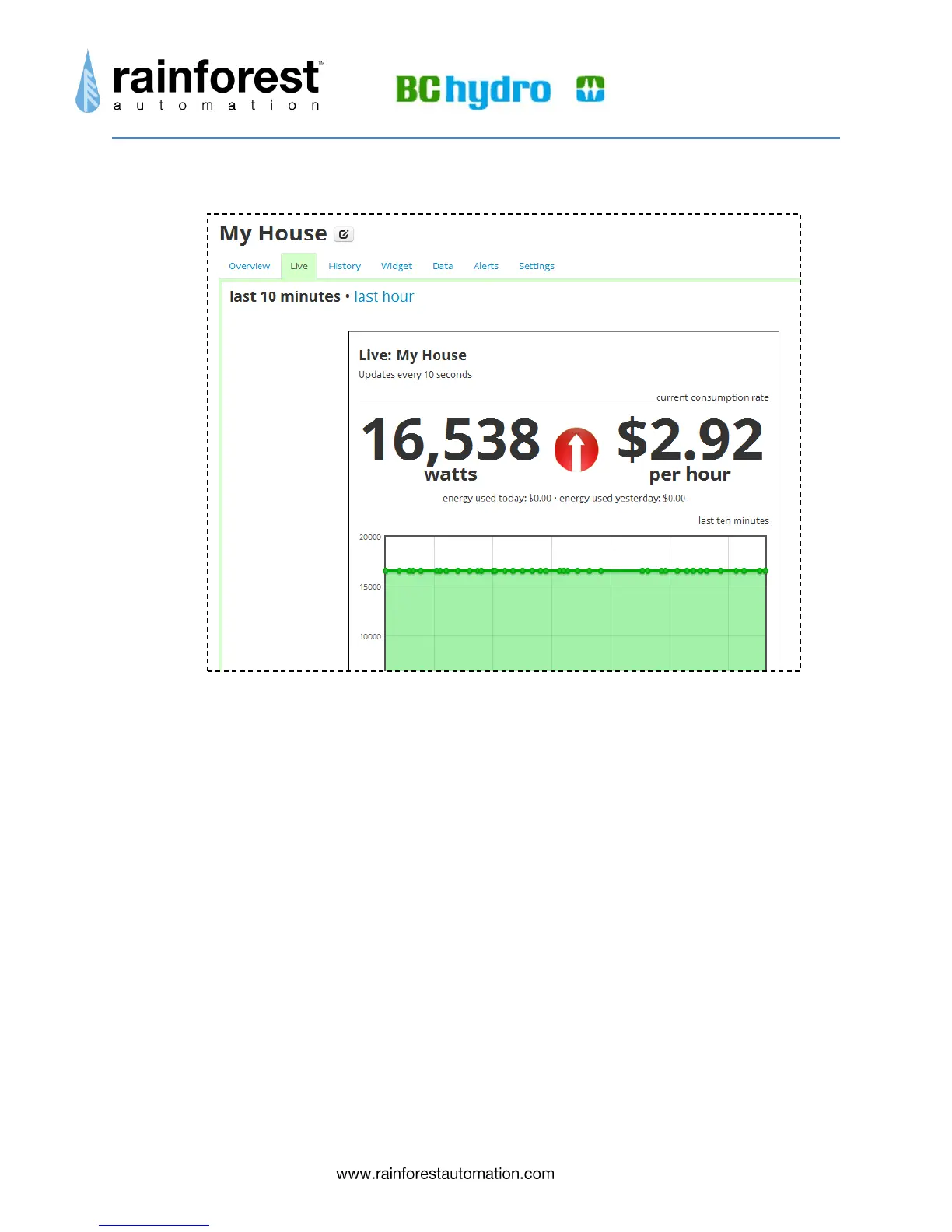 Click the “Live” tab in the “My House” screen to see your near real time data: