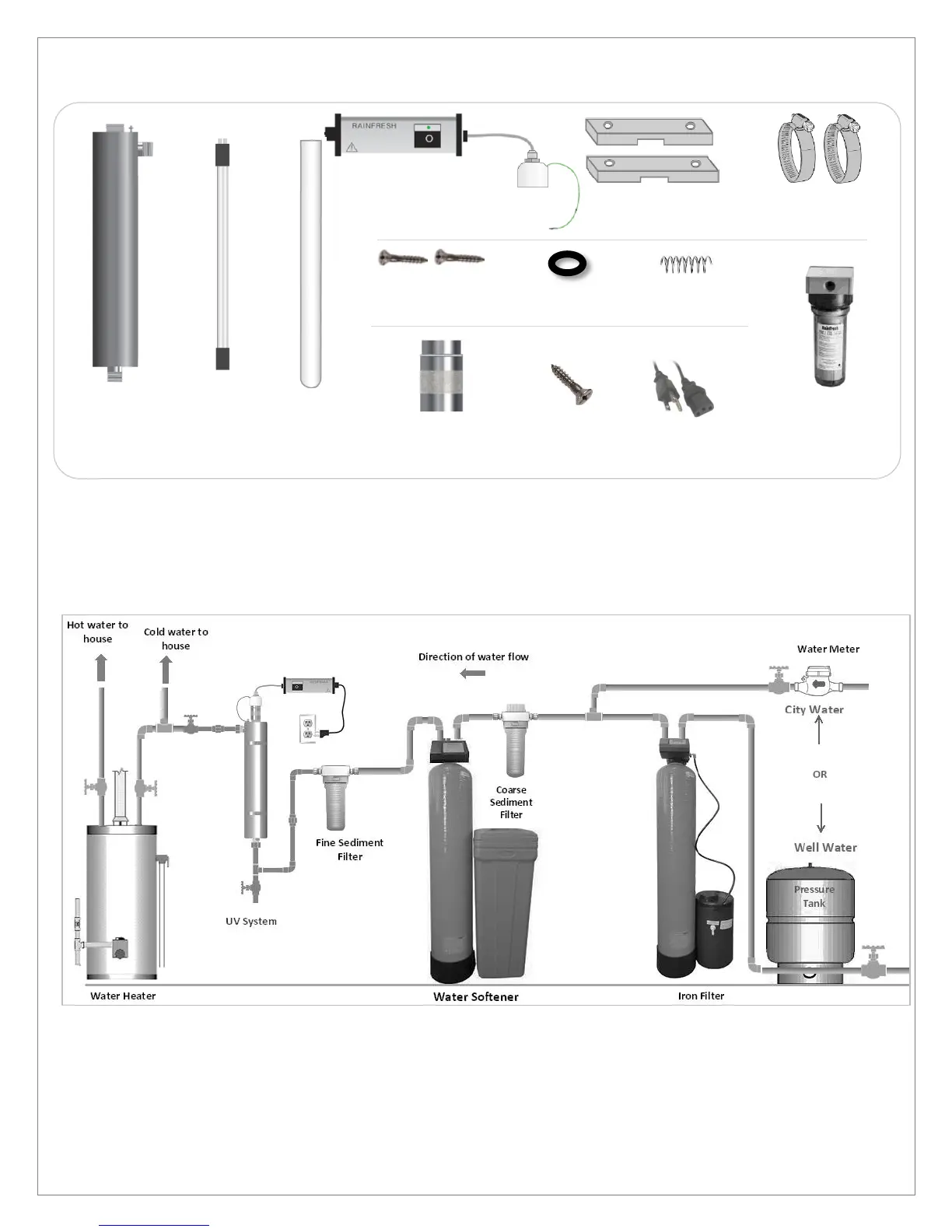 filters/conditioner installed, such as softener/iron filter etc., the UV system should always be installed as the last step of