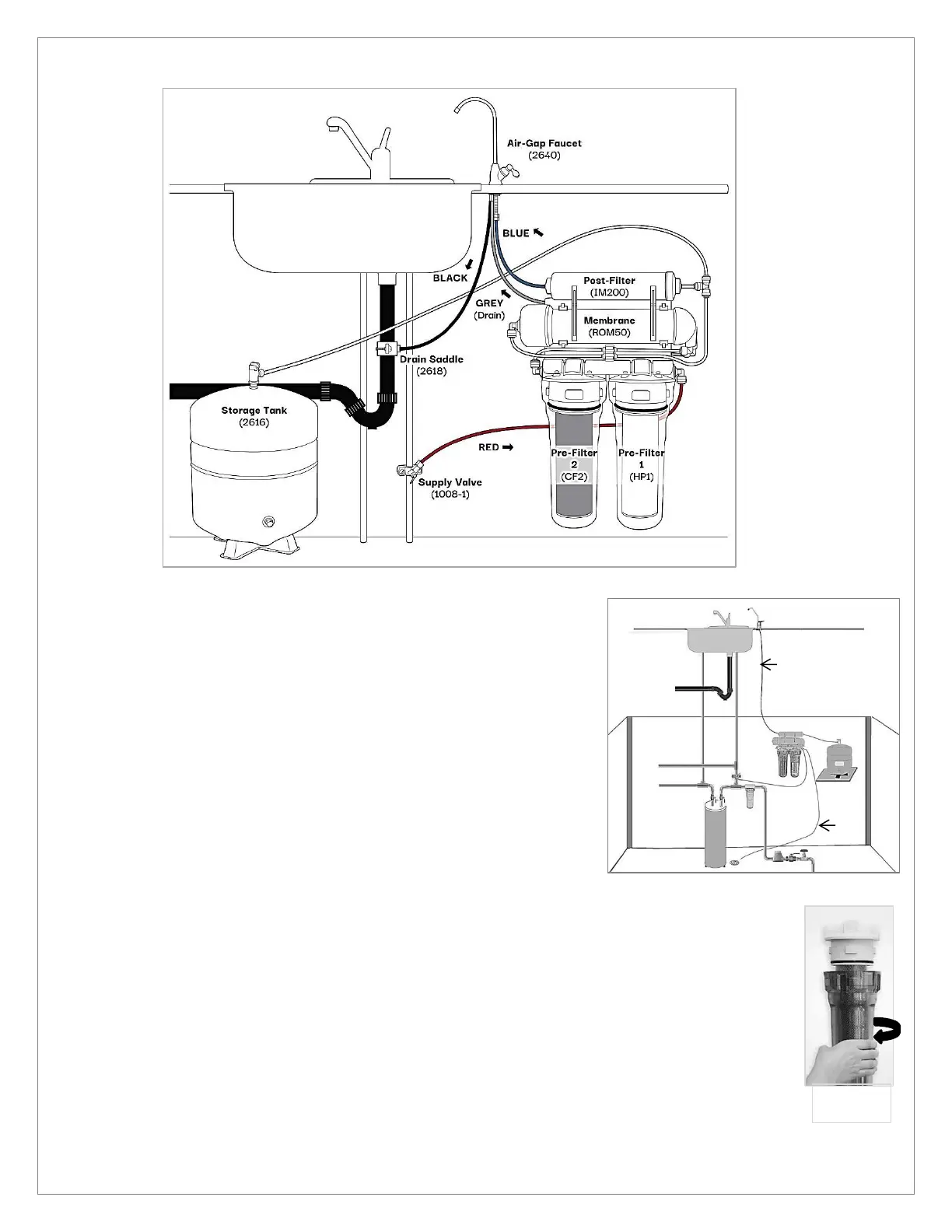 The Reverse Osmosis system can also be installed in the basement with only