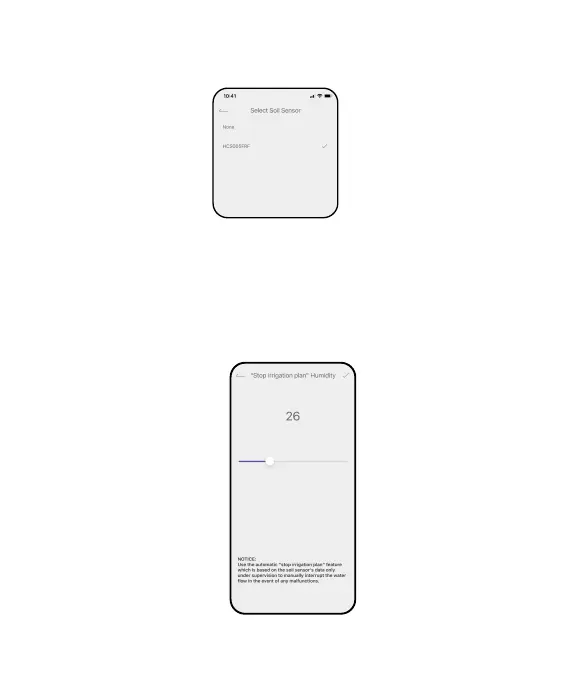 "Stop irrigation plan humidity": Set a "stop watering" value of the soil