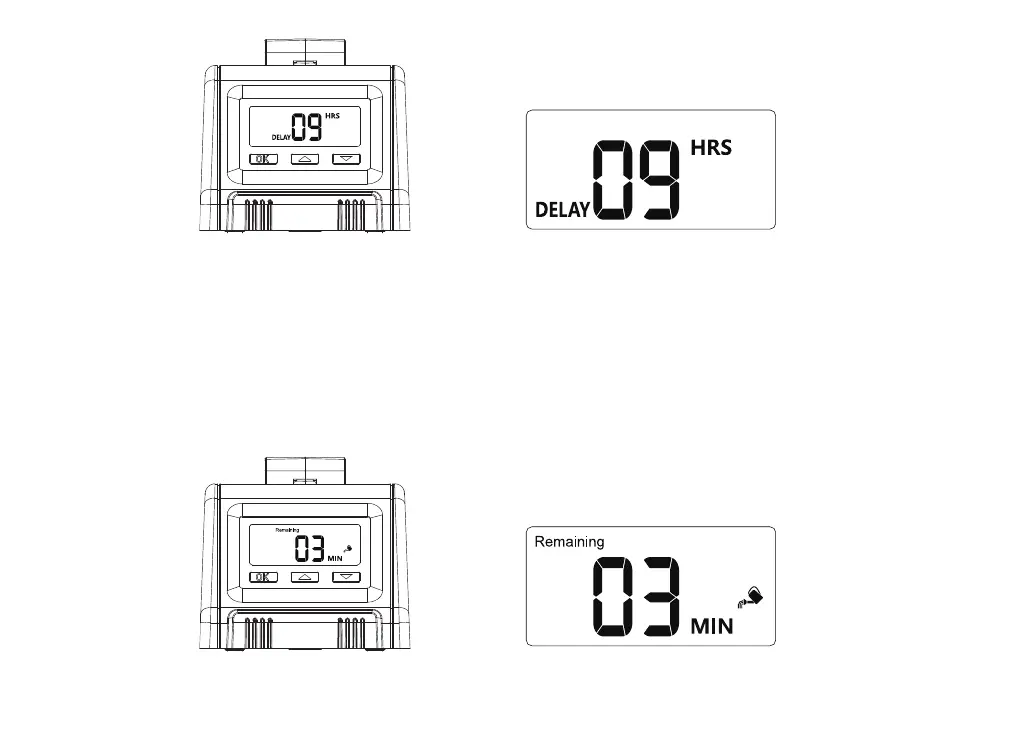 When the screen shows DELAY,use the "▲" and "▼" buttons, to select watering delay schedule from 0