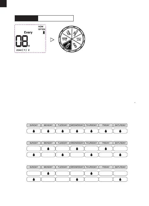 2) Use "+" and "-" buttons, to set your watering frequency. You can