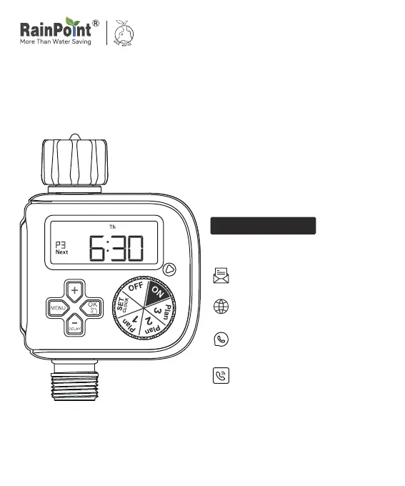 If your RainPoint Timer isn't watering or has low water flow, first, try replacing the batteries with new alkaline batteries. Also, ensure that the dial is turned to the 'ON' position and that the faucet is fully turned on.