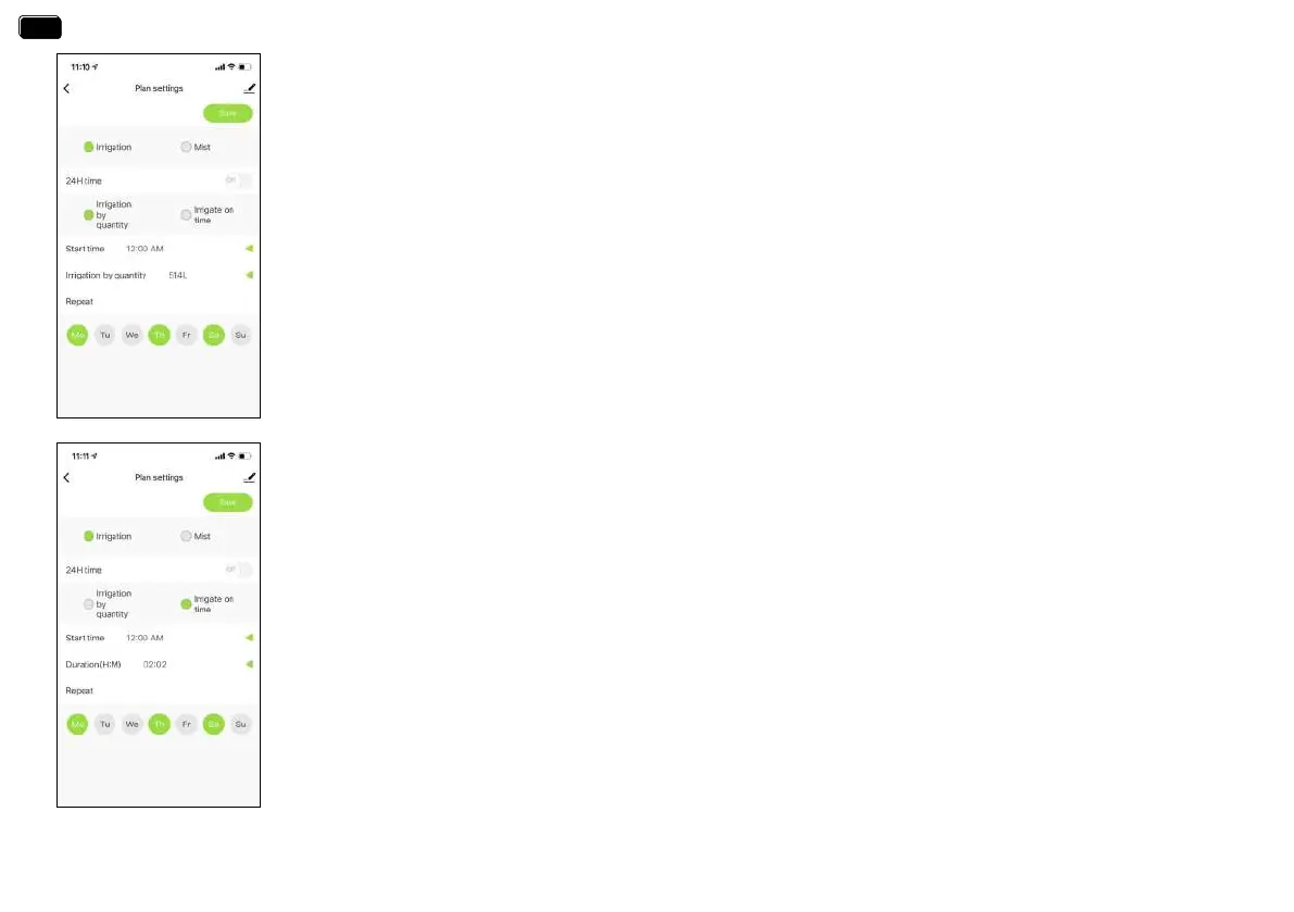 7.Click to select irrigation on amount to set the continuous watering volume