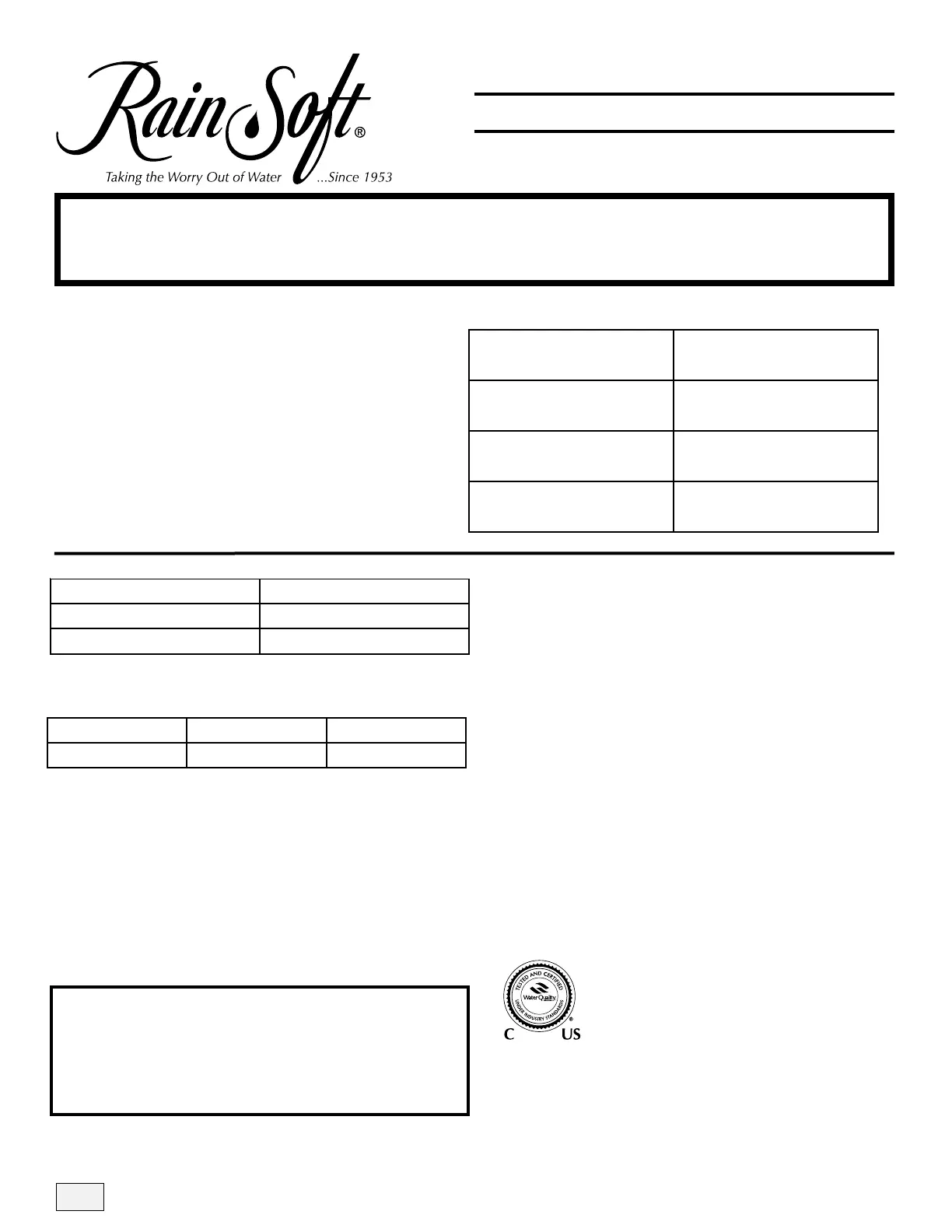 TESTED AND CERTIFIED BY THE WQA TO NSF/ANSI