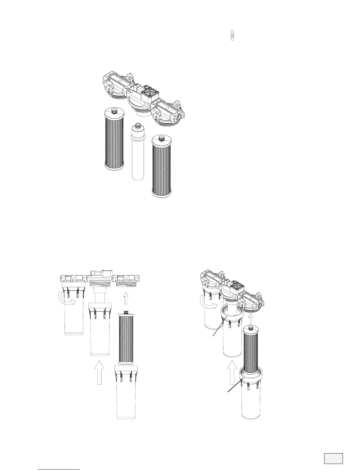•Asegurar las carcasas de los filtros apretando a mano en sentido