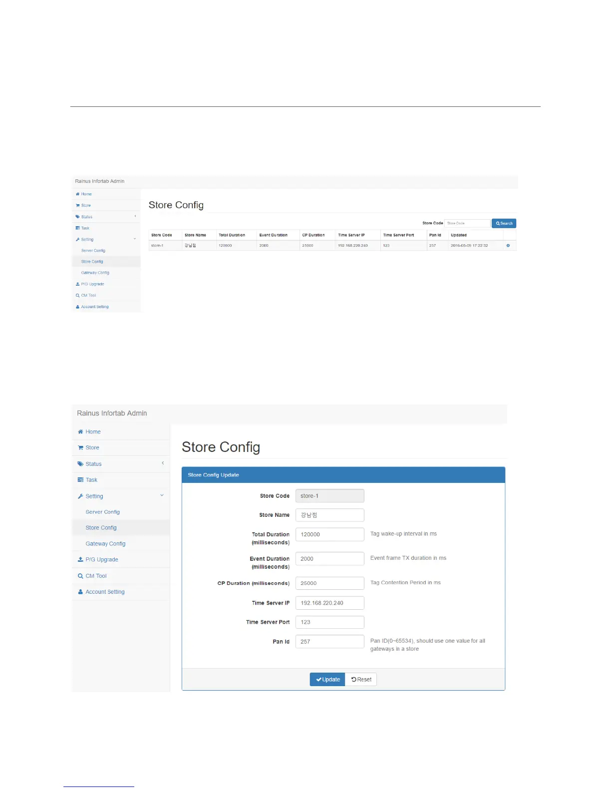 The following is the screen to modify store information.
