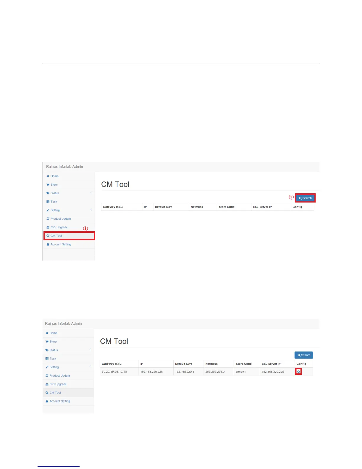 Select the CM Tool menu on the left side and click the Search button on the right