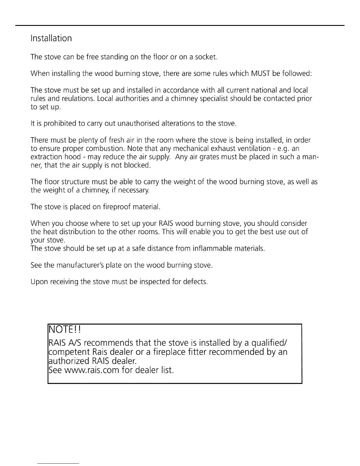 RAIS Q-Tee 2 - General Stove Installation Procedures; Stove Placement and Air Supply