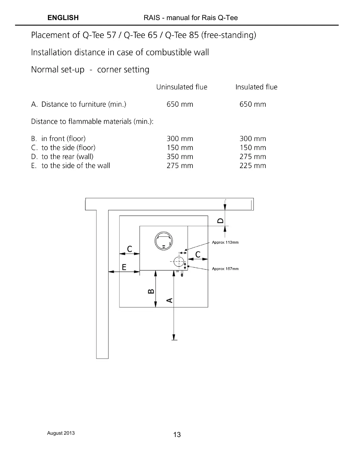 RAIS Q-TEE - Free-Standing Placement Clearances