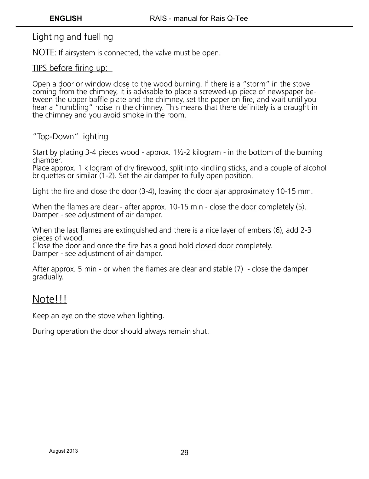 RAIS Q-TEE - Lighting and Fuelling the Stove