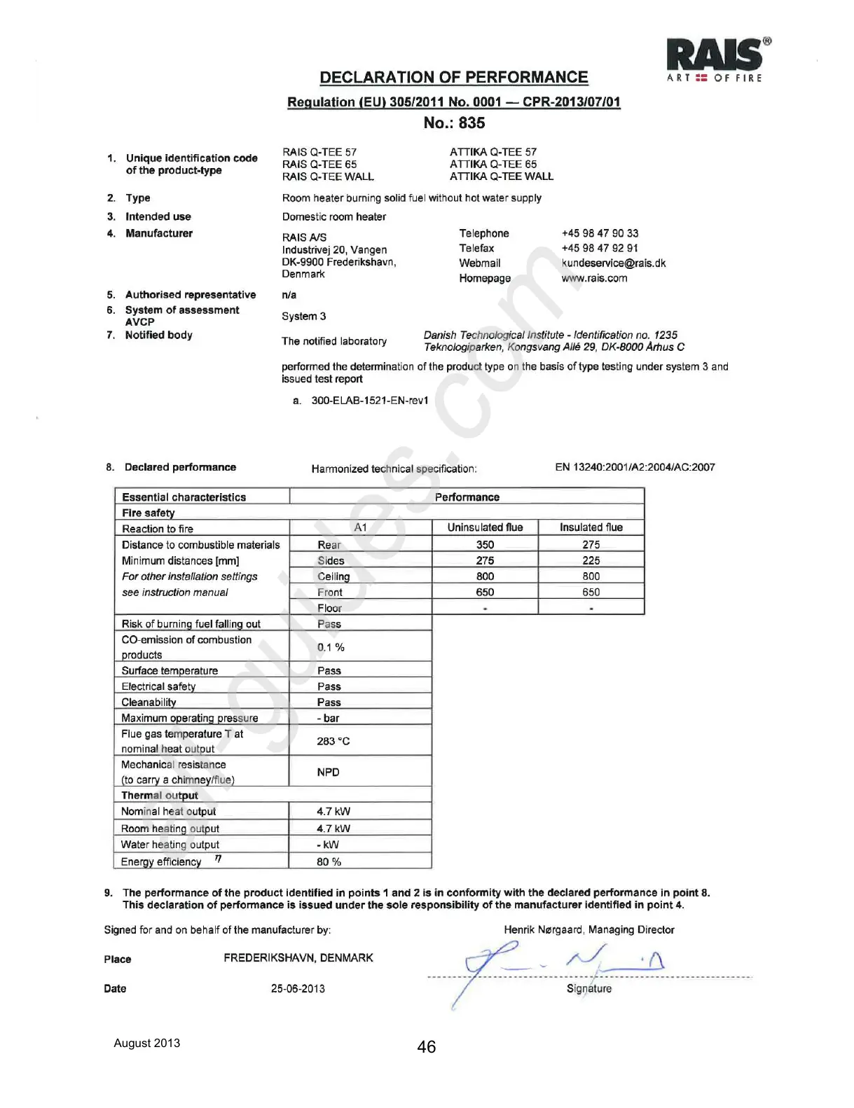 RAIS Q-TEE - Declaration of Performance and Compliance