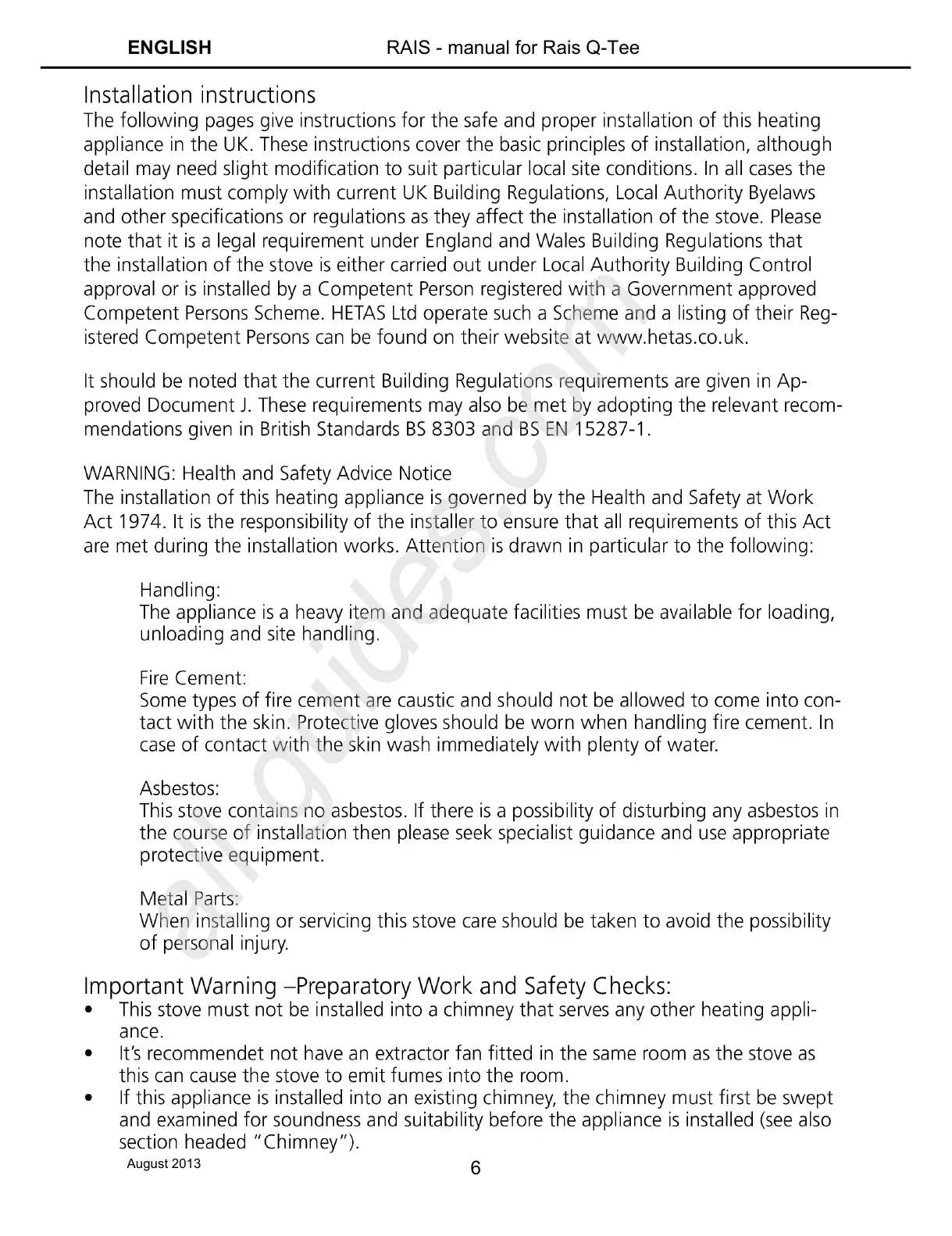 RAIS Q-TEE - Safe Installation Procedures; General Safety Guidelines and Pre-Checks