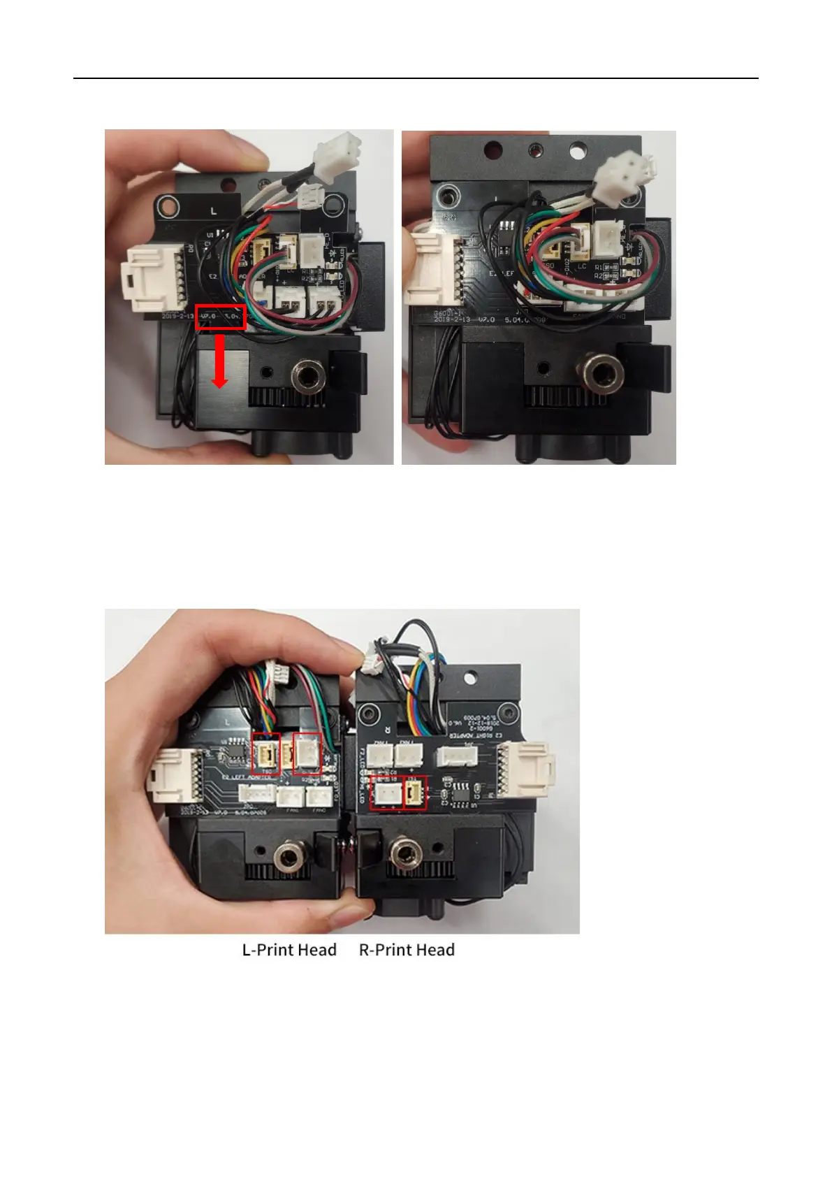 22. Plug the thermocouple cable and heating rod power cable back to the extruder connection board