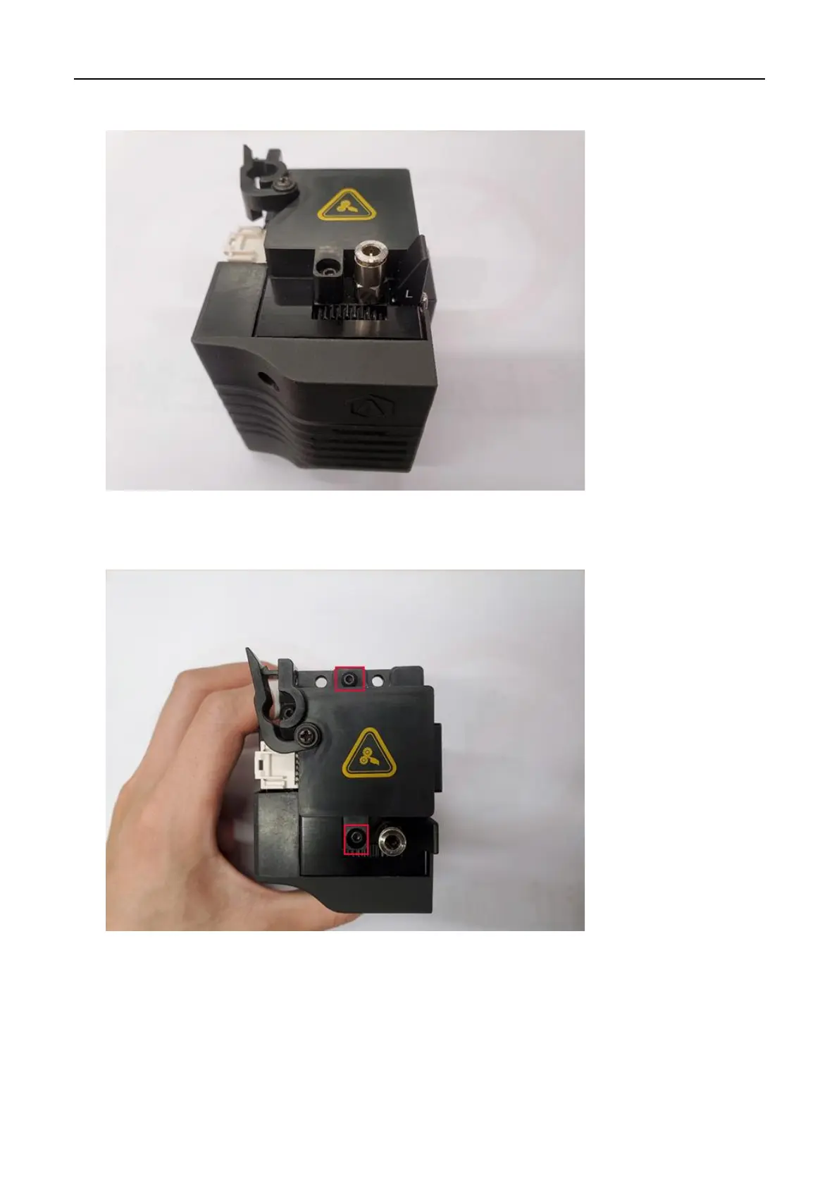 7. Use a 2mm hex wrench to remove the two screws retaining the extruder connection board