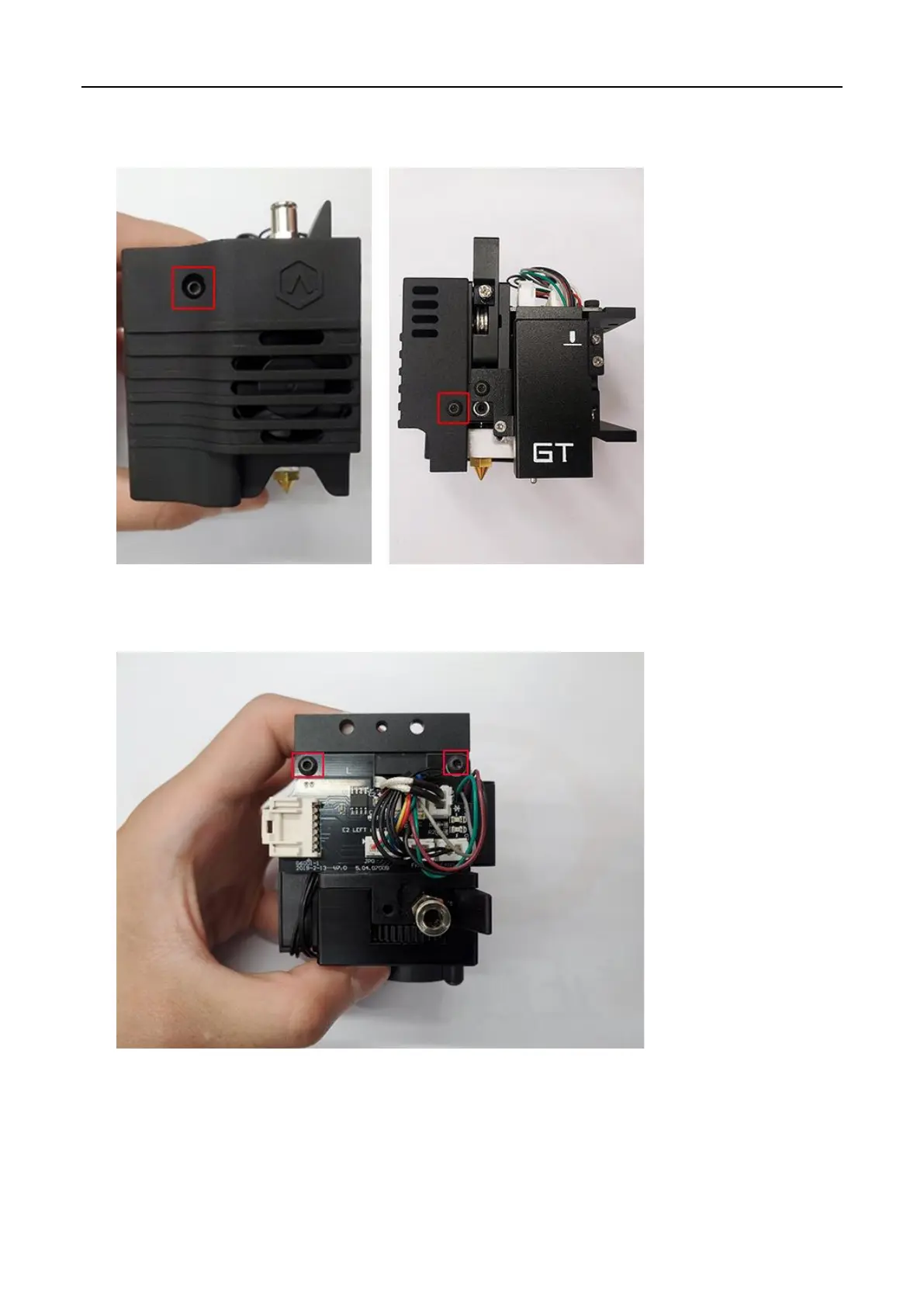 9. Use a 2mm hex wrench to remove the two screws retaining the extruder connection board to the