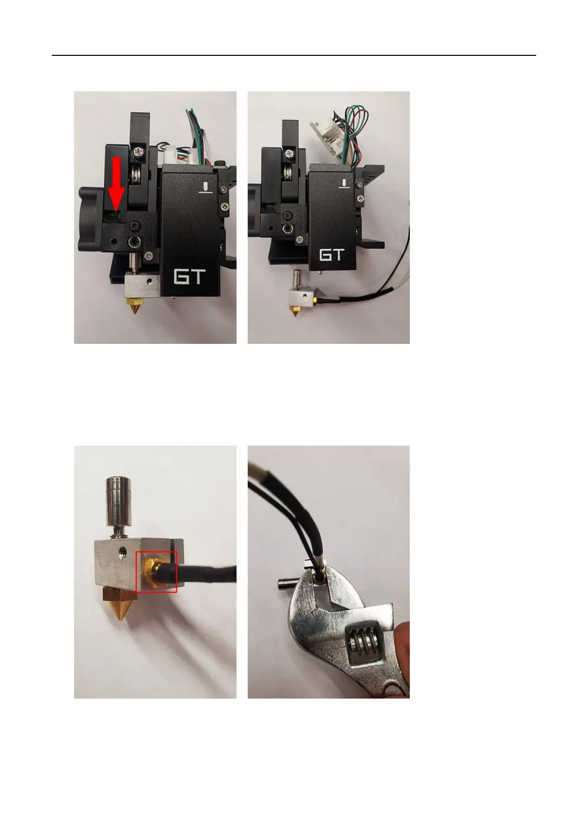 15. Remove the thermocouple on the hotend with an adjustable wrench.