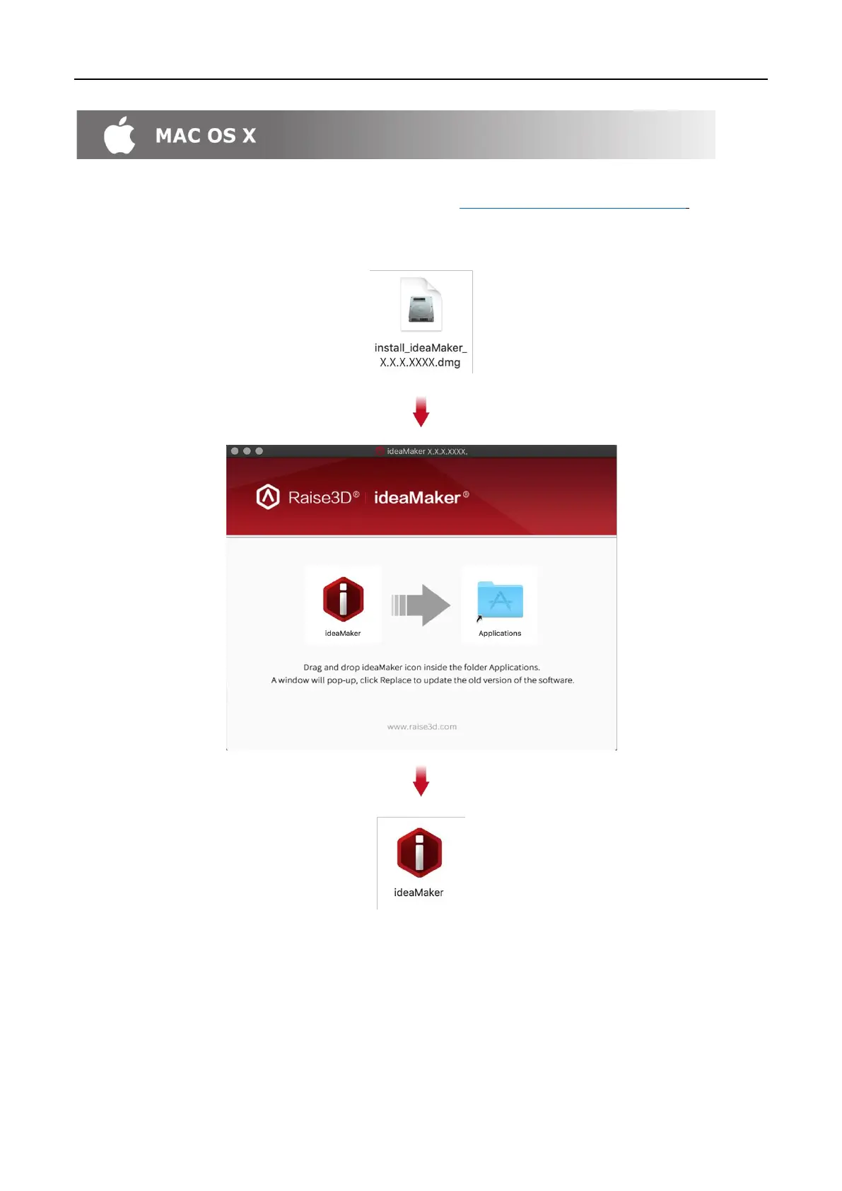 Raise3D E2 - ideaMaker Software Installation: macOS Guide; Open Disk Image (macOS); Drag and Drop to Applications
