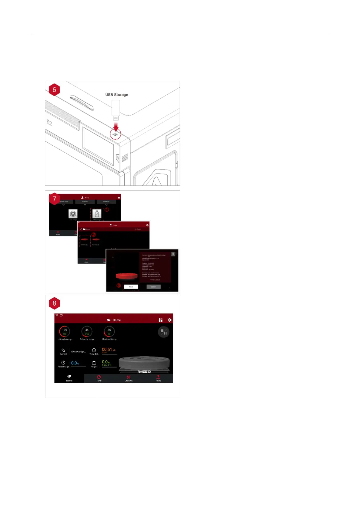 Raise3D E2 - Starting Your First Print Job; Insert USB Storage; Select and Print File; Monitor Printing Status