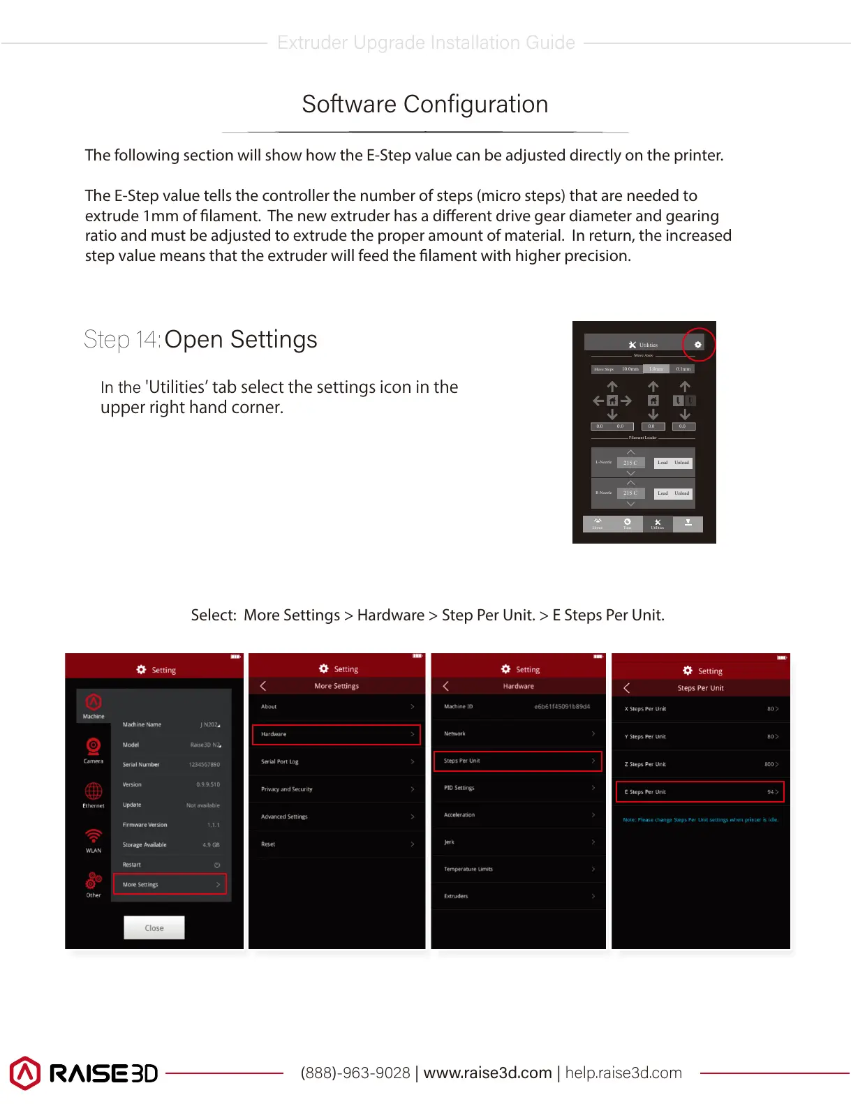 Select: More Settings > Hardware > Step Per Unit. > E Steps Per Unit.