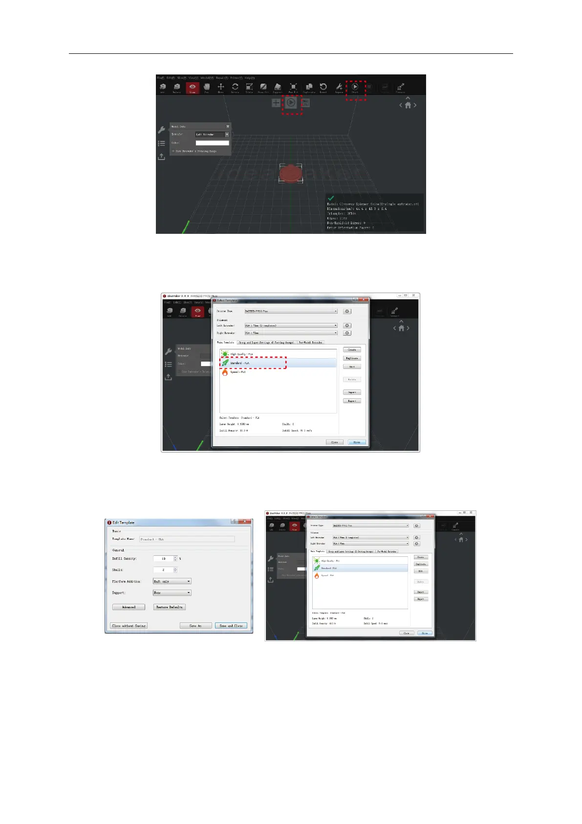 ➢ Confirm your printer type and material are correct, then select the standard slicing template.